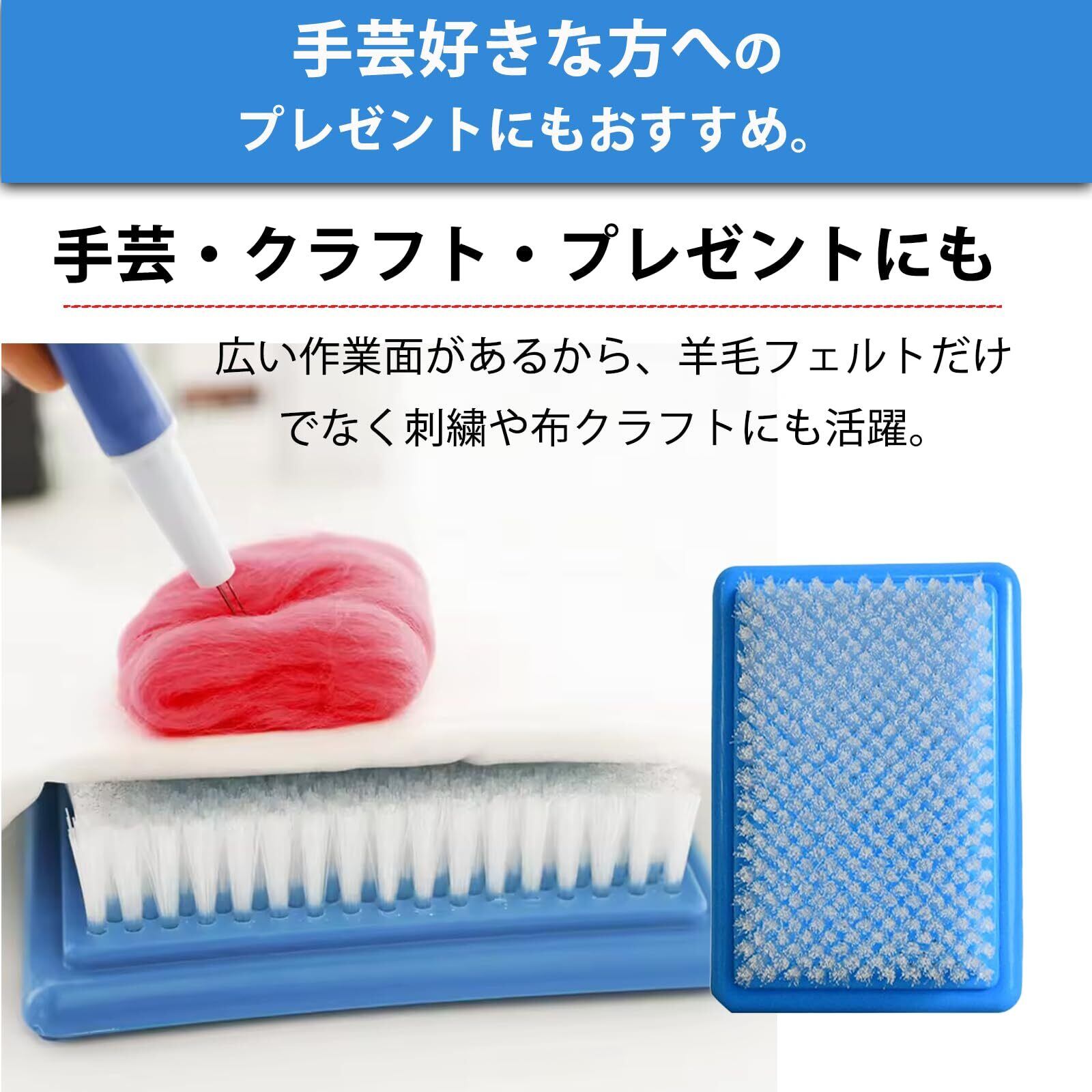 【手芸・クラフト・プレゼントにもぴったり】広い作業面があるから、羊毛フェルトだけでなく刺繍や布クラフトにも活躍します。ぬいぐるみや立体モチーフなどの大きな作品も安定して作業できるのが特長。やわらかいブラシが針をしっかり受け止め、細かい部分もきれいに仕上がります。手芸好きな方へのギフトや、教室用の備品にもおすすめのサイズ感です。
