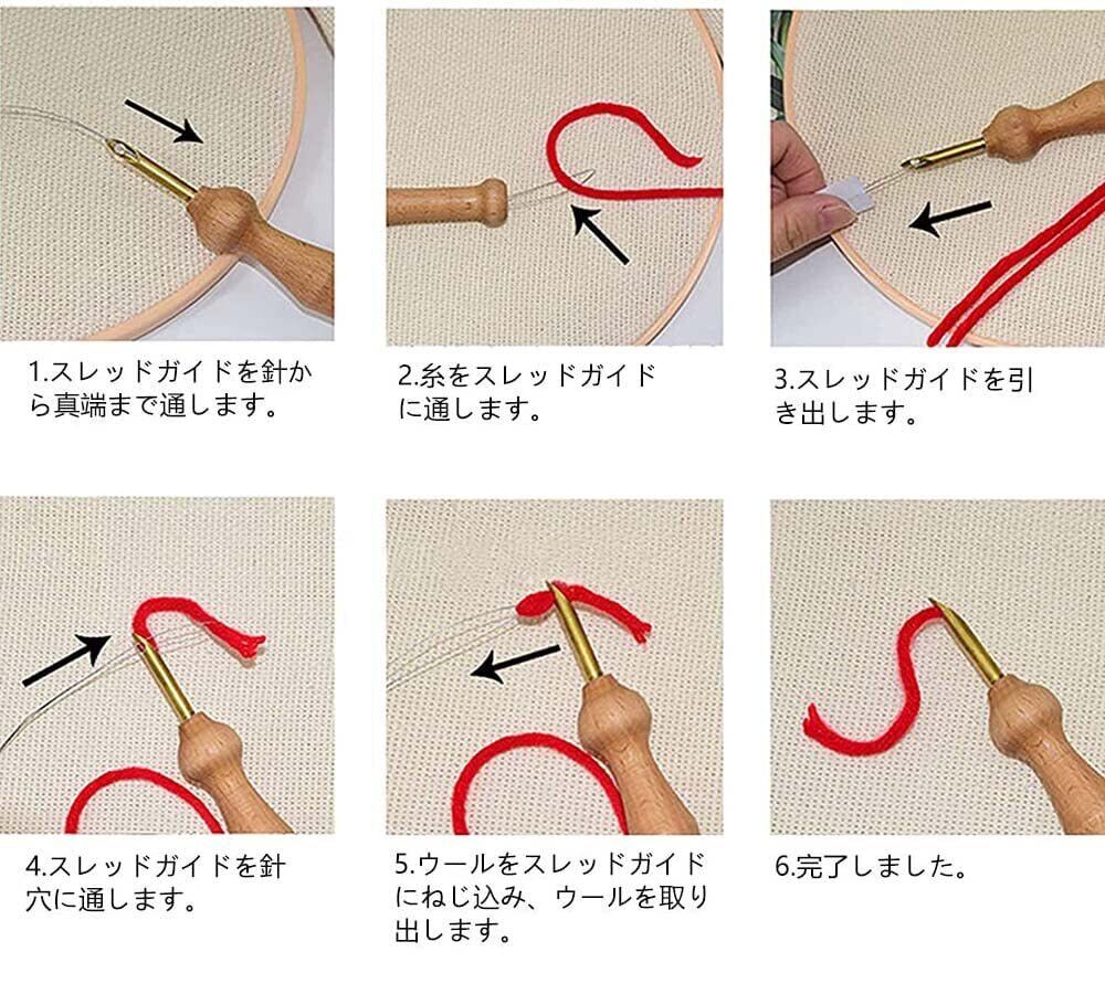 Paizizi パンチ針 ニードルパンチ フリーステッチングニードル 長さ調整(針先5mm+3.5mm+2.5mm+1.6mm)糸通し付き 刺繍キット