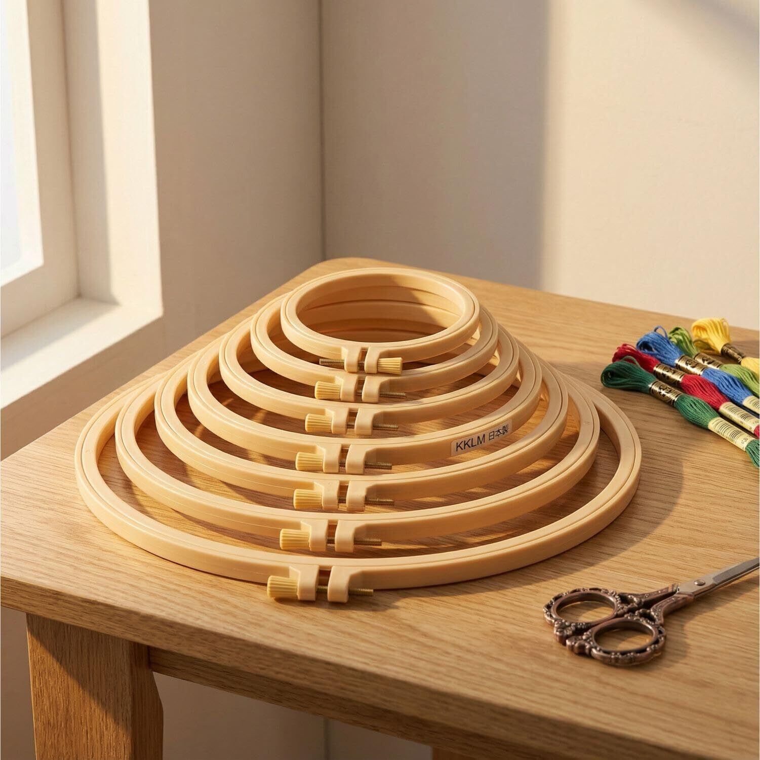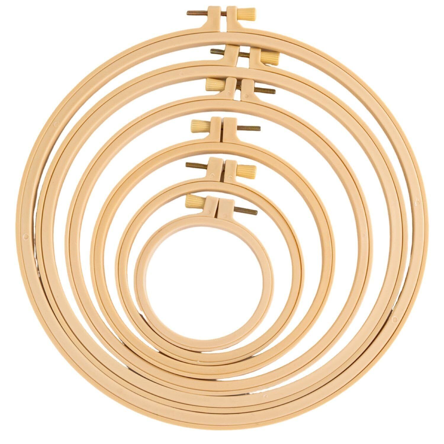【セット内容】プラスチック製の刺繍リング6個セットで、サイズはそれぞれ異なり、直径は9.5cmから27cmまで揃っています。