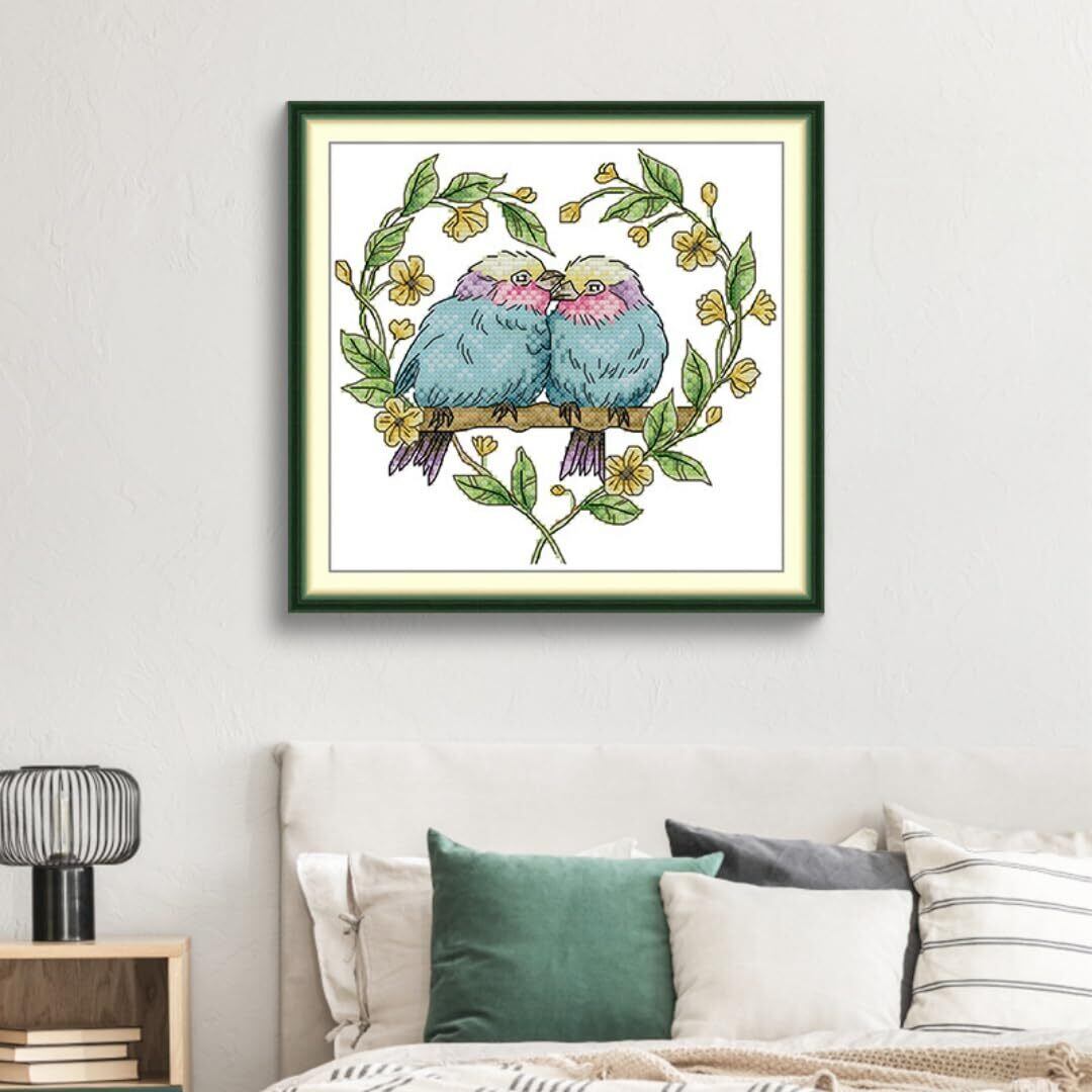 Gofission 14ct スタンプ付きクロスステッチキット 大人用 初心者 恋の鳥 DIY プレプリント クロスステッチ 刺繍セット アクセサリー付き 壁の装飾 21x21cm (鳥)