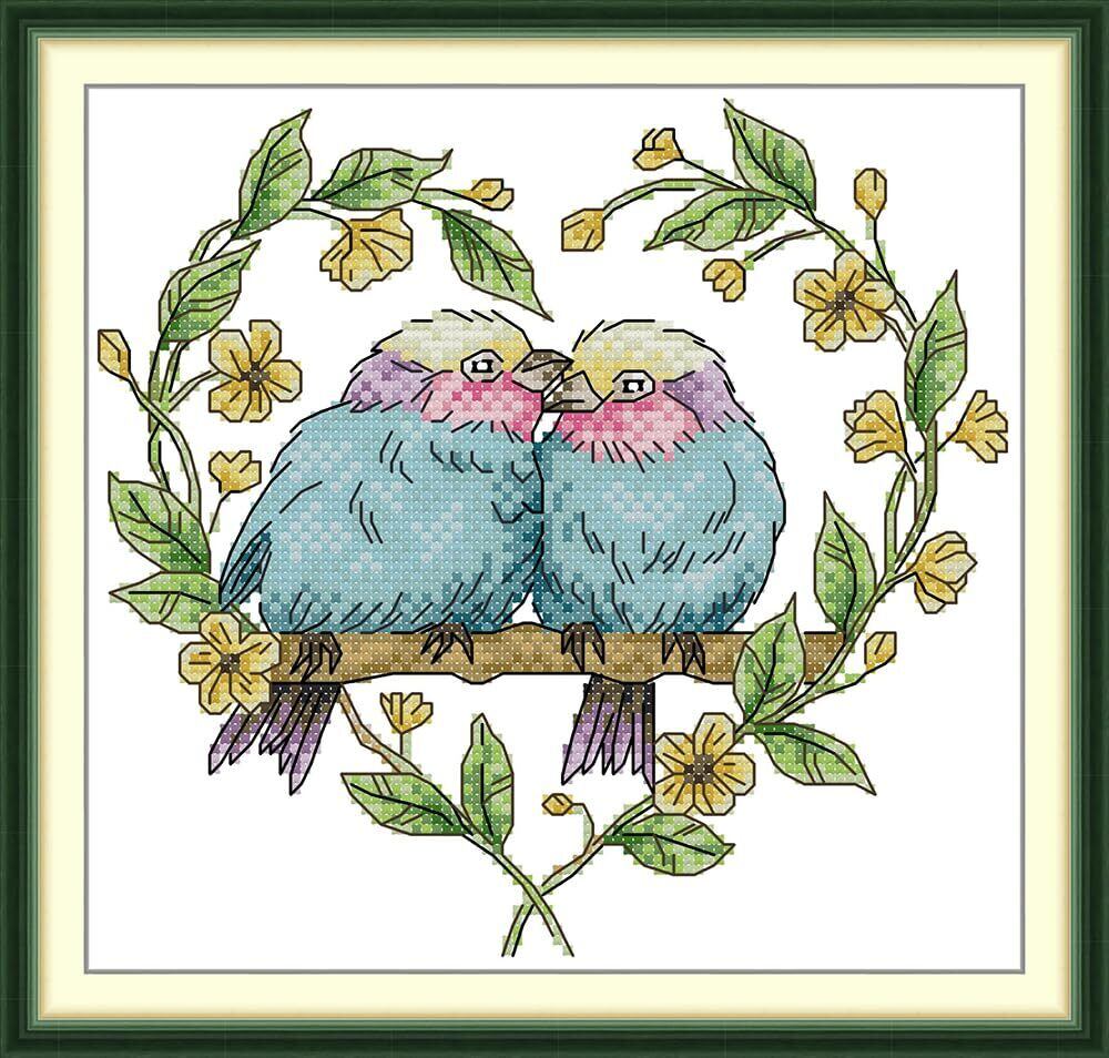 【在庫処分】Gofission 14ct スタンプ付きクロスステッチキット 大人用 初心者 恋の鳥 DIY プレプリント クロスステッチ 刺繍セット アクセサリー付き 壁の装飾 21x21cm (鳥)