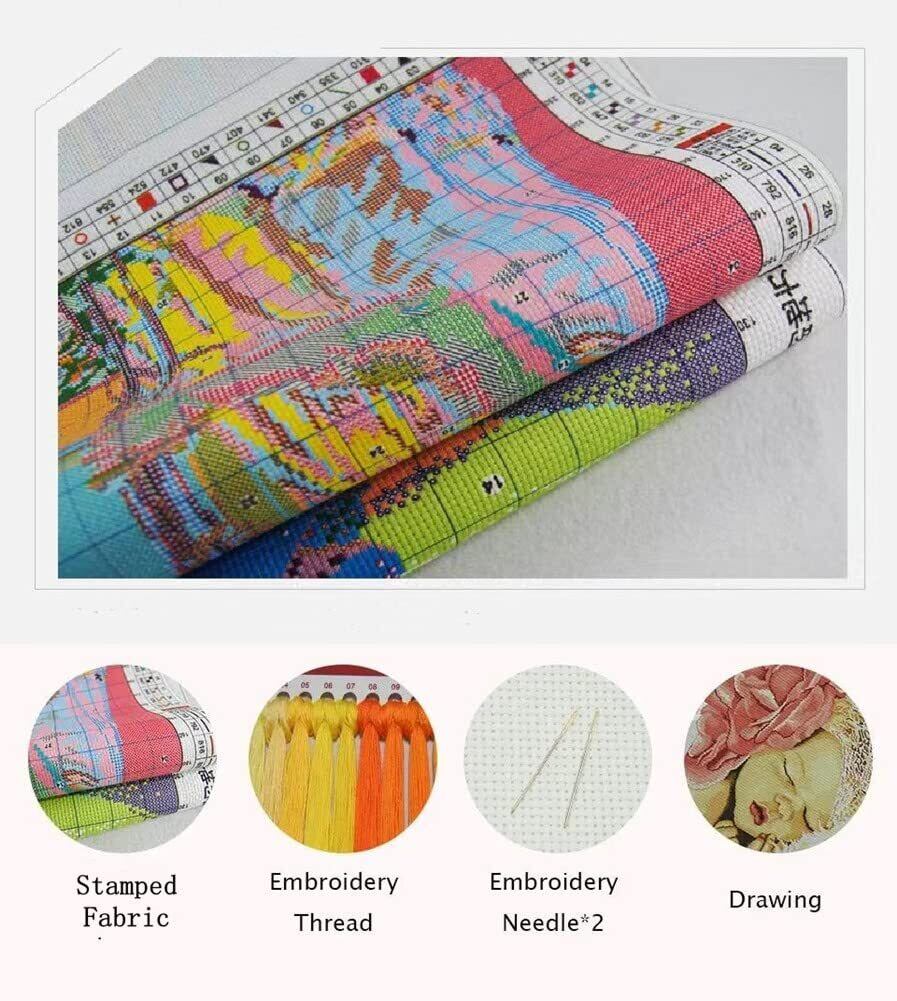 14カウントクロスステッチキット:タイトルのキャンバス生地のサイズ、刺繍エリアは生地のサイズより少し小さくなっています。 正確な可溶性のプレプリントパターン。グリッドを描く必要がなく、時間を節約し、手間をかけません。 大人、初心者、ティーン、刺繍愛好家に最適。
