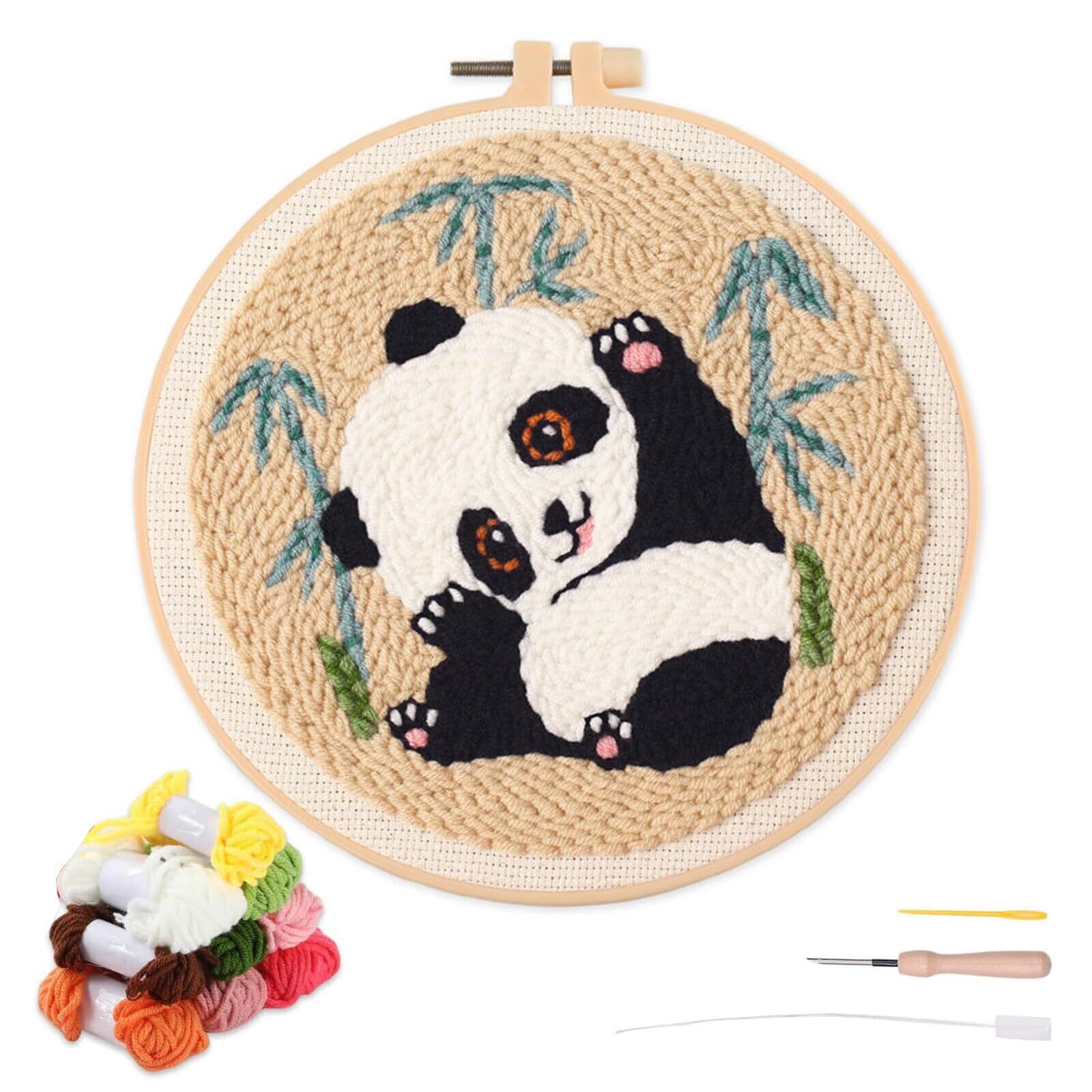 artcici パンチニードルキット動物パンダのかわいい植物パターンツールと糸、簡単な刺繍ラグフックセットを備えた初心者向け (茶色)