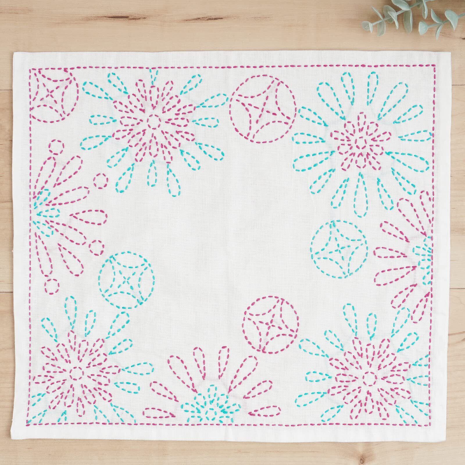 図案に沿って刺すだけ!かんたんキット 刺し子のふきん