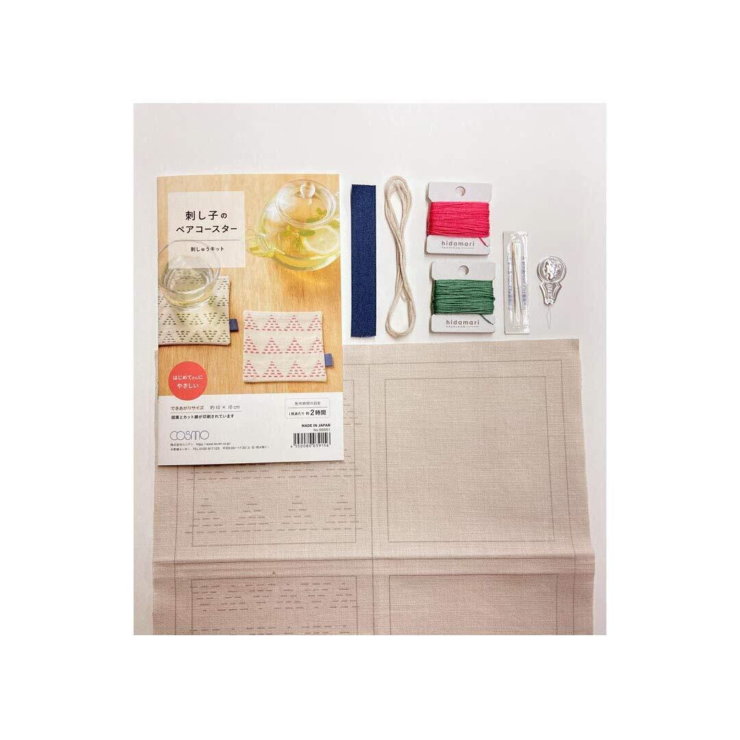 LECIEN (ルシアン) hidamari 刺しゅうキット 刺し子のペアコースター 約10×10cm CSK98952 グリーン
