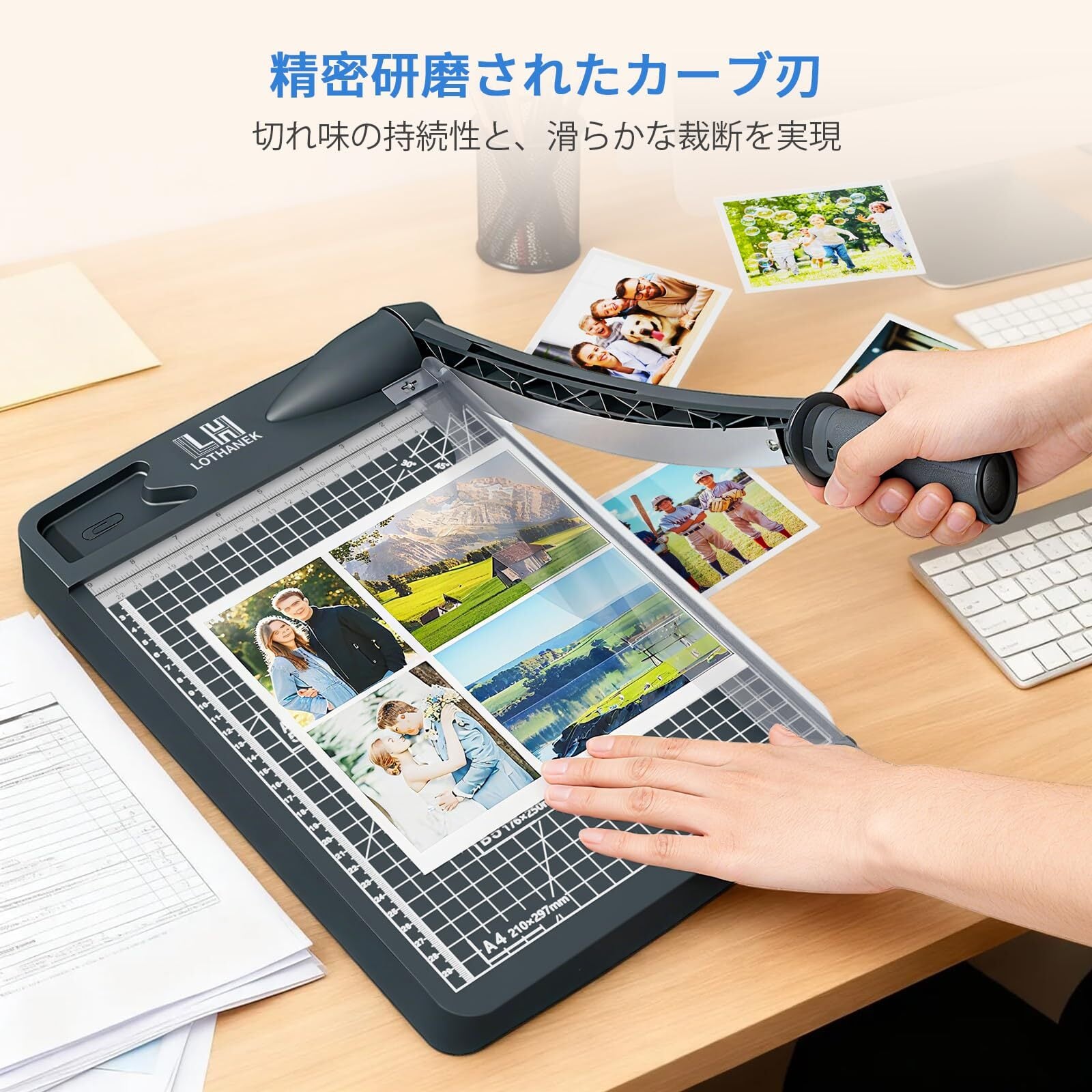 シャープで耐久性のある刃: 3Cr13ステンレス鋼製の湾曲刃により、滑らかで力がいらない裁断を実現。紙の端はきれいで、引き裂きやほつれはありません。