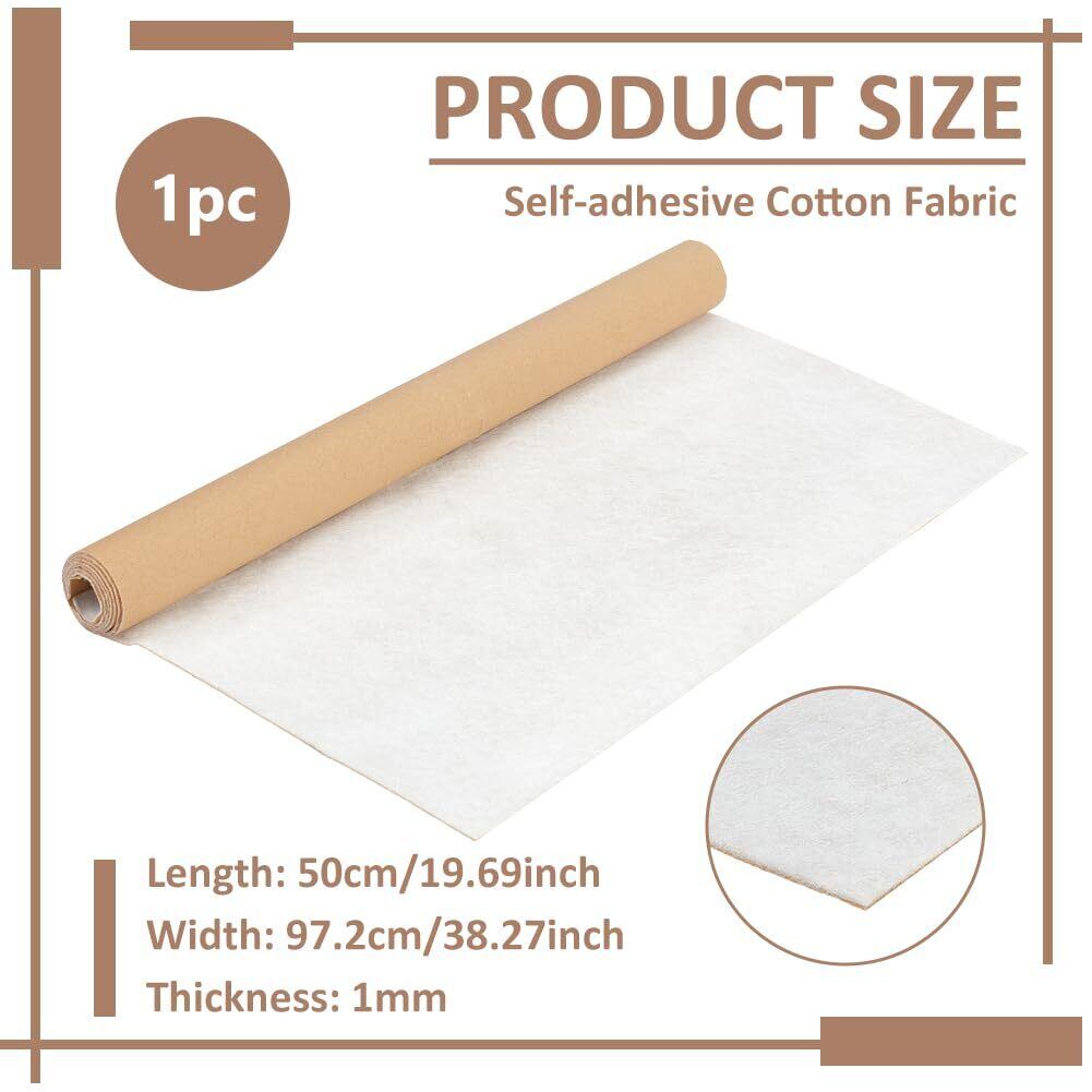 BENECREAT 50x97cm コットン芯地 片面接着綿 粘着あり 1mm厚さ- 80G 不織布ロール インターフェイス生地 キルティング、裁縫アクセサリー、DIYクラフト製作用 粘着インターフェイス生地 ベージュ