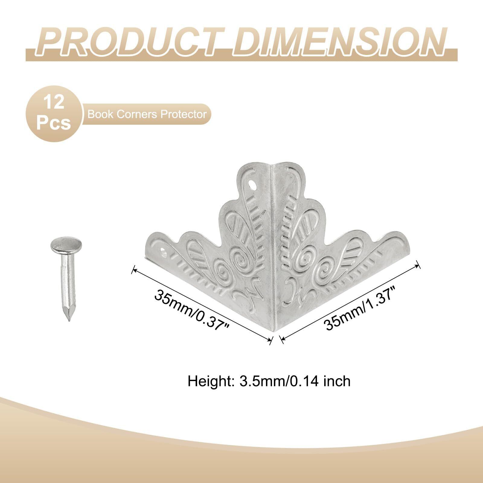 PATIKIL 1.4 x 1.4" 金属製ブックコーナープロテクター ヴィンテージアイアントライ アングル装飾トリムコーナーガードエッジカバー ノートブックスクラ ップブッキングアルバム用 - 12個(シルバー)