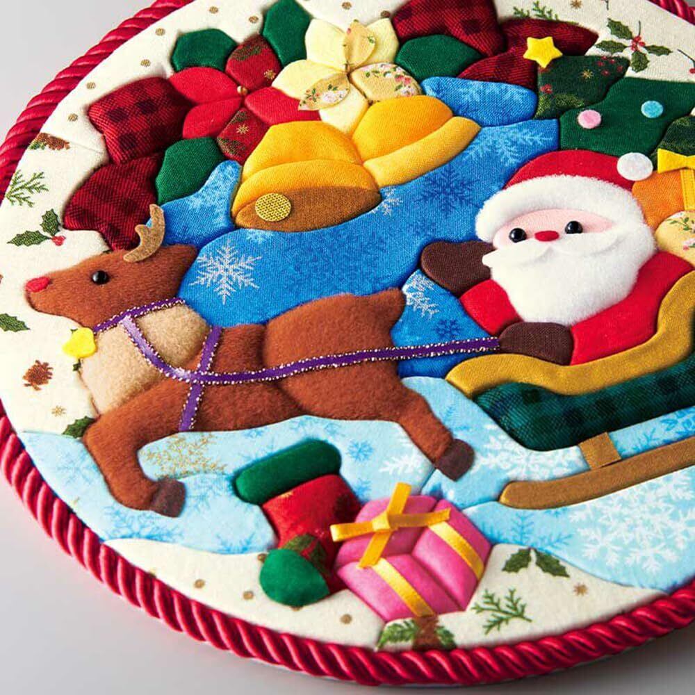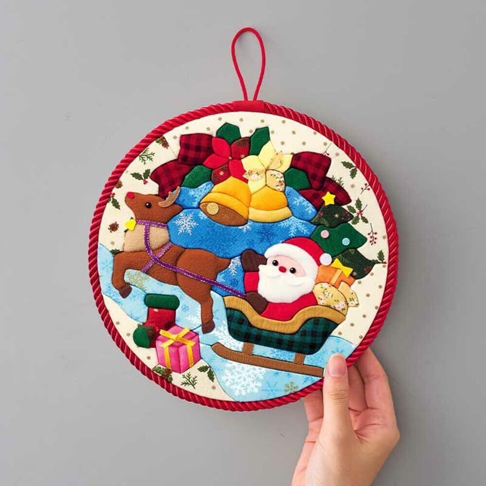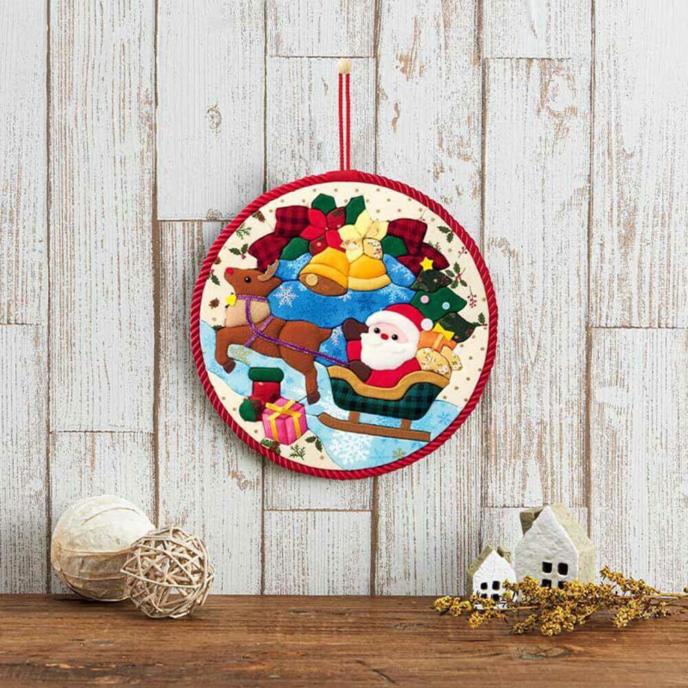 鈴の音色を響かせて幸せを届けるサンタクロースが可愛らしい、きめこみパッチワークのオーナメント