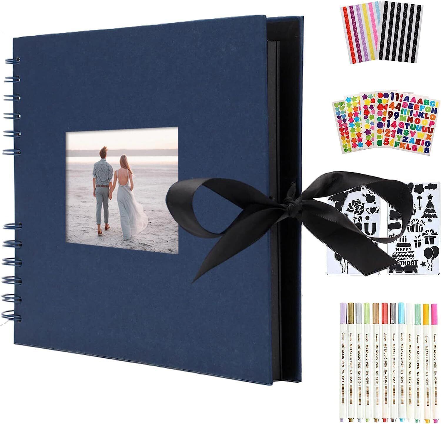 AIOR 手作りアルバム スクラップブック フォトアルバム 大容量 DIY 台紙 40枚80ページ 31CMx21.5CM 写真アルバム 手作りフォトブック 切り抜き帳 おしゃれ 写真収納 記念日 誕生日 結婚式 ギフト(ウィンドウブルー)