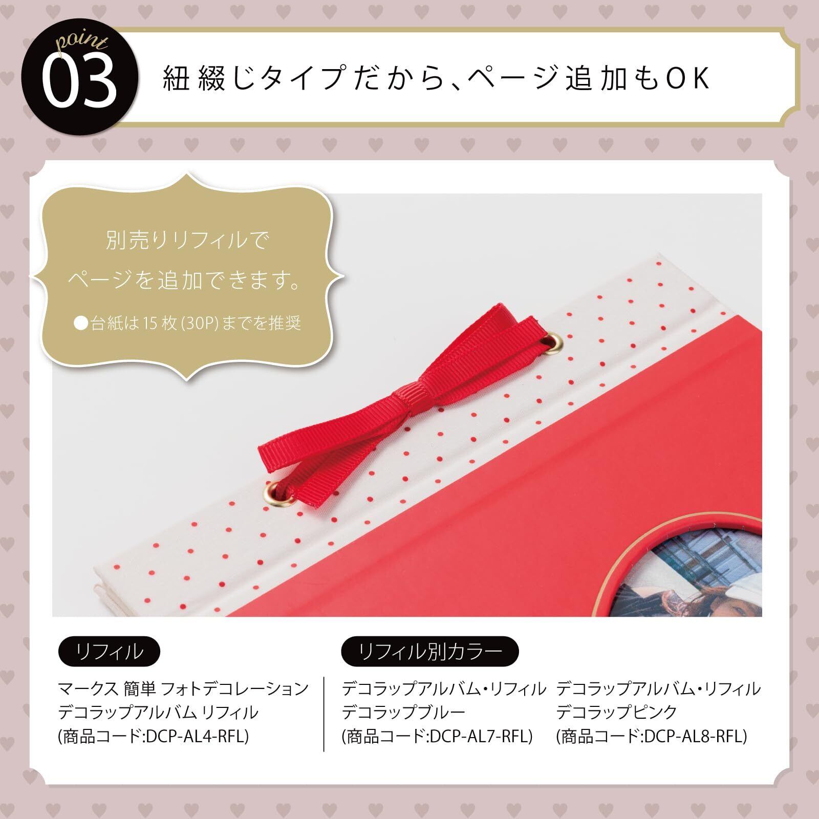 マークス デコラップアルバム ハート フォトアルバム 貼るタイプ 手作り 粘着式 書きこめるフリー台紙 おしゃれ かわいい デコラップ ピンク DCP-AL10-PK