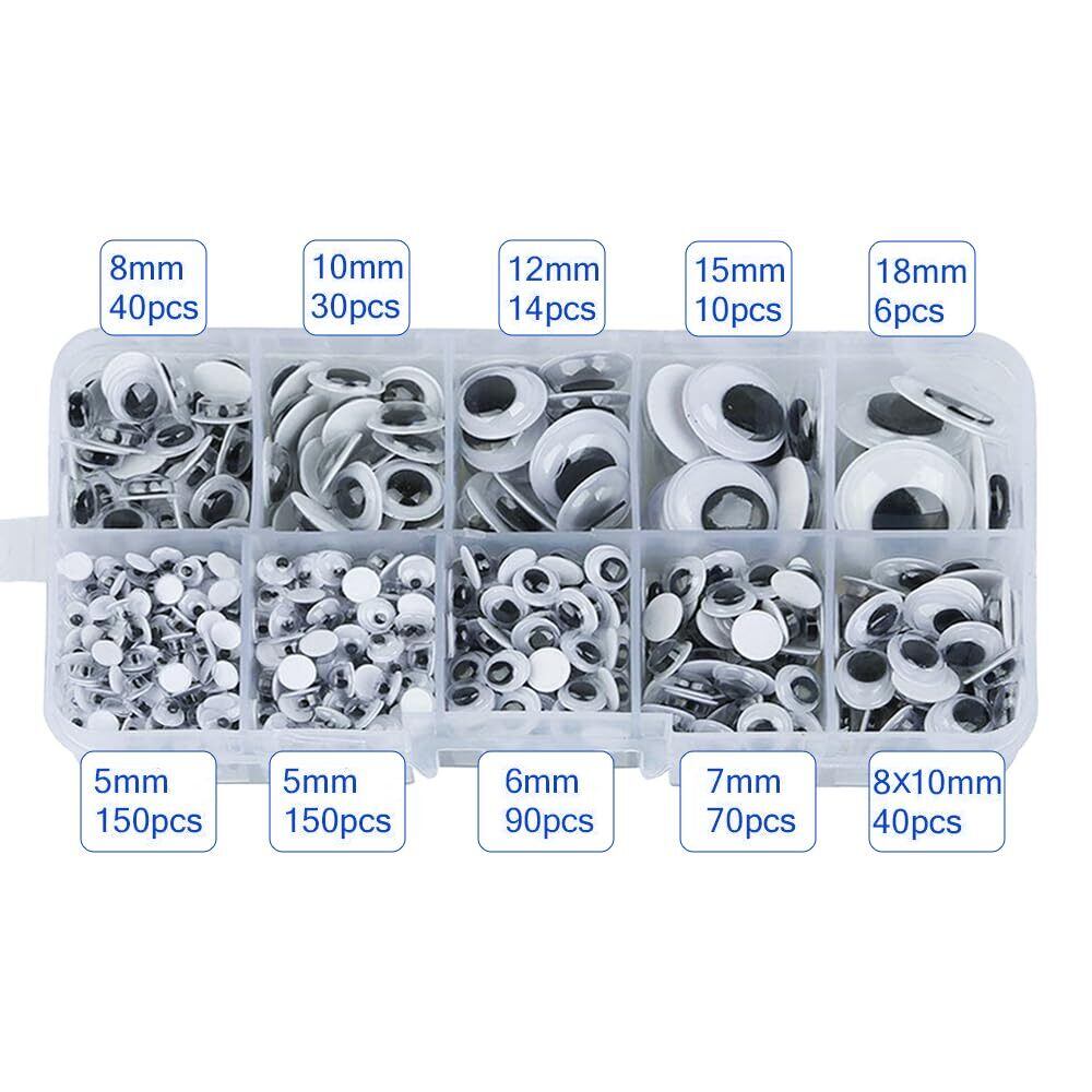 アイ 人形 黒目 おもちゃ 目玉 目パーツ シール 動く DIY 手作り 手芸パーツ 貼り付けタイプ 730個セット 動物 収納ケース付き 材料 ドールメイキング 5mm/6mm/7mm/8mm/10mm/12mm/15mm/18mm