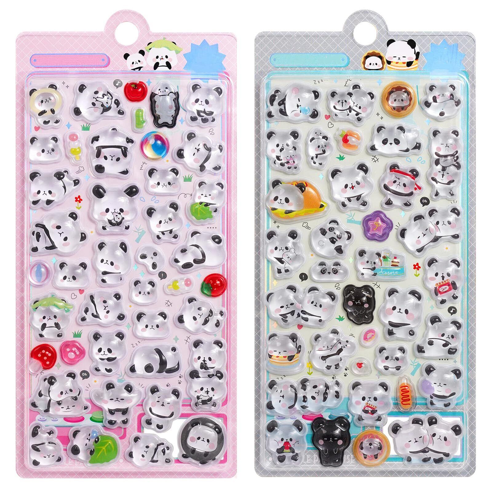3D動物シール 立体ステッカー 2枚セット 可愛い スクラップブック プランナー ジャーナル ラップトップ スマホケース 水筒 ペンケース デコレーション (パンダ模様-62&63)