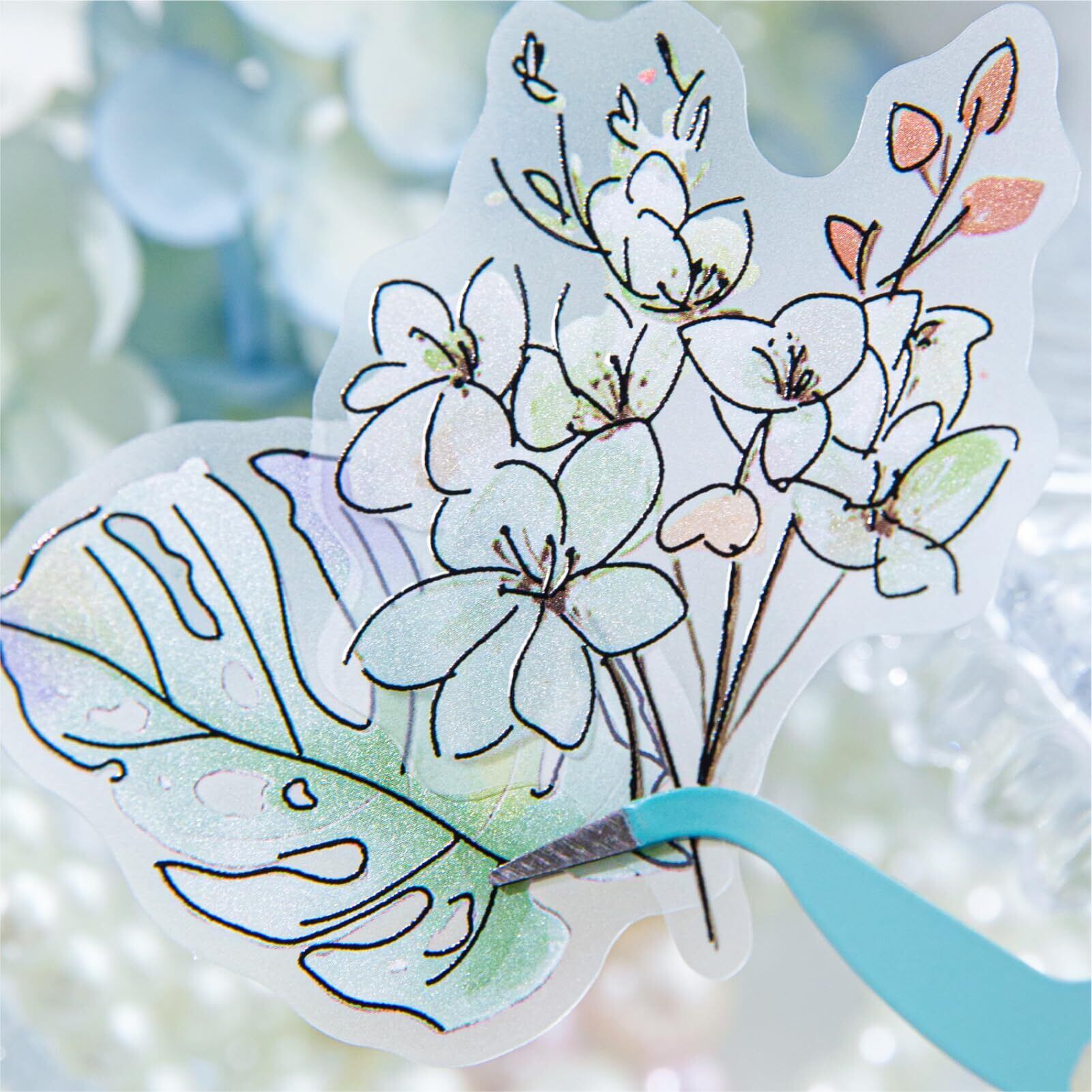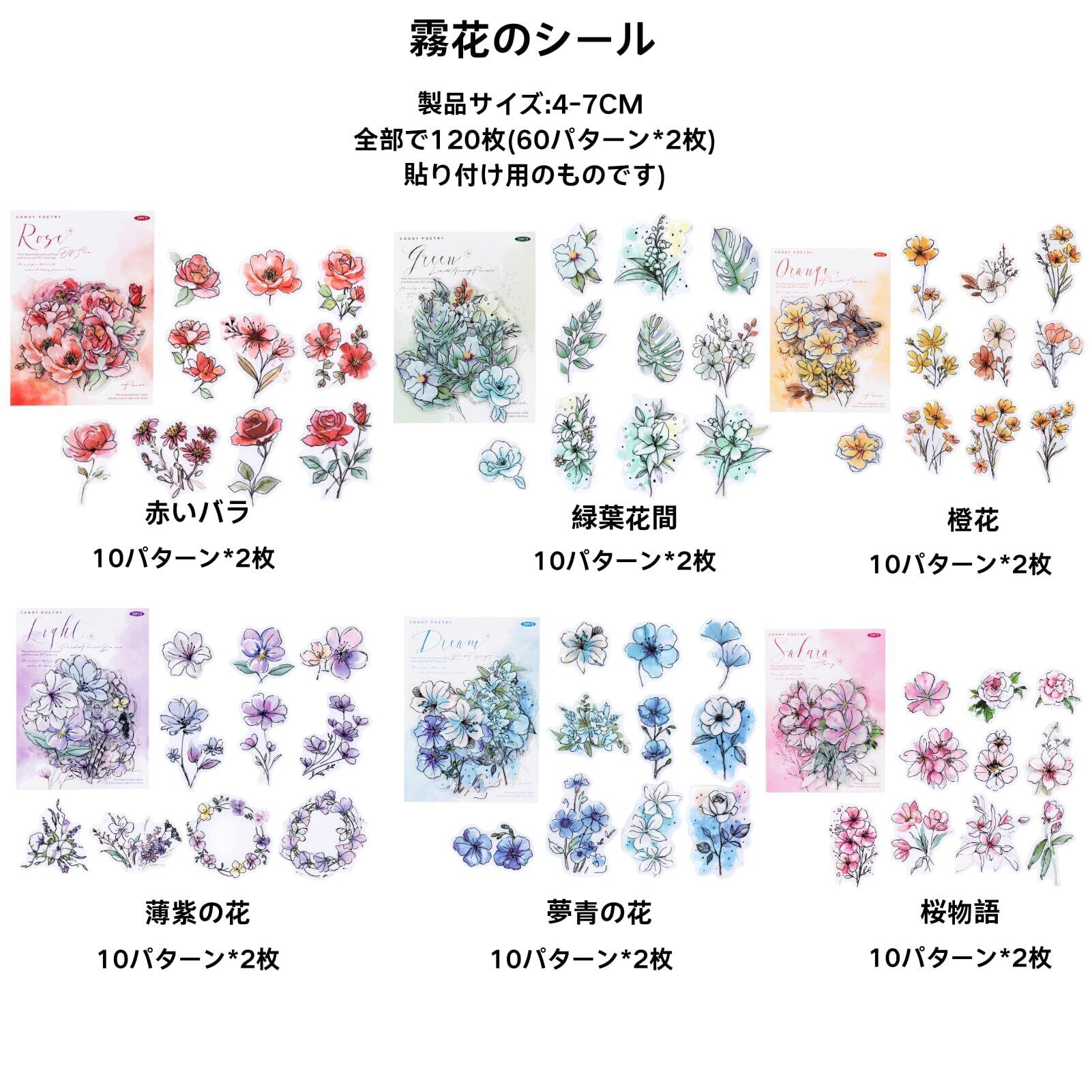 【在庫セール】水彩風 フレークシール 花 コラージュ 素材 大容量 120枚 半透明 霧面 PET 立体 花のシールセット 黒金加工 スクラップブック素材 コラージュ 手帳、カード、ギフトバッグ、パソコン、 ジャーナル 、スクラップブック DIYデコレーションステッカー