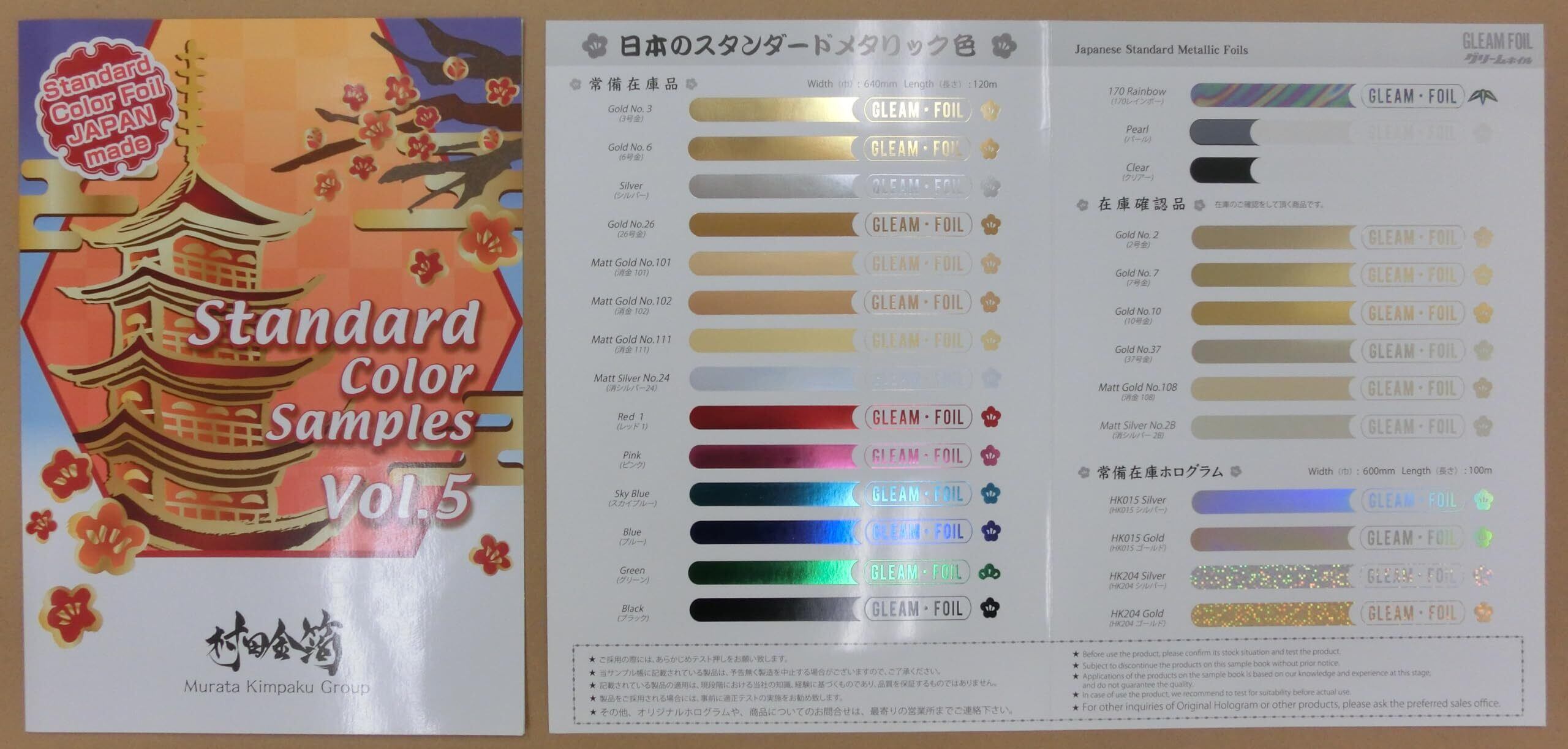 【特価セール】《定番 売れ筋 箔の色目を確認》村田金箔 グリームホイル 箔色カタログセット