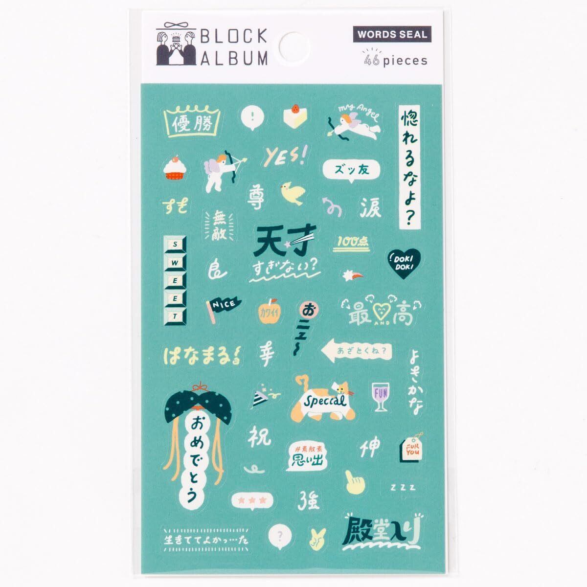 ギフトにぴったりなBLOCK ALBUMをよりかわいく、より楽しく 貼るだけで写真がにぎやかになる、アルバムのデコレーションに便利なシール。 WORDSシールは、1シート 46ピース。 友だちや恋人と撮った写真にぴったりな言葉を集めました! デザインは2種類。それぞれ2カラーからお選びいただけます。