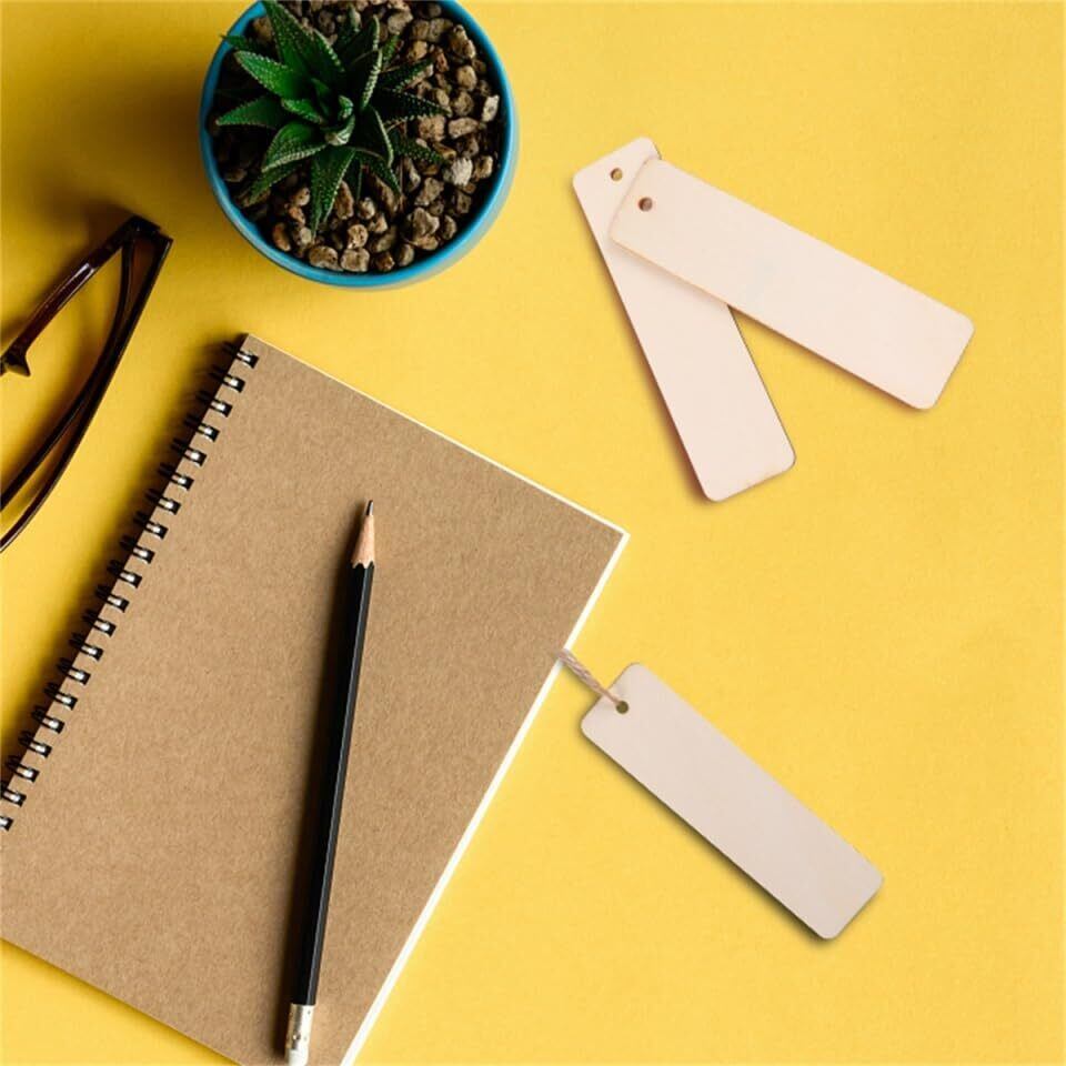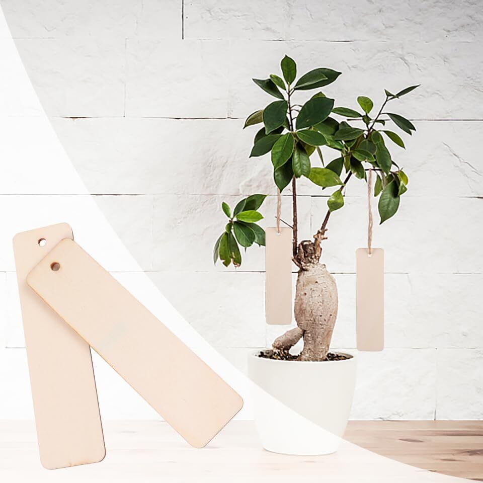 紐付き: 長方形の木製タグにはあらかじめ穴が開けられており、付属の紐でアイテムに結び付けることができます。そのため、ギフトタグ、吊り下げ装飾品、テーブルカードなどとして使用するのに最適です