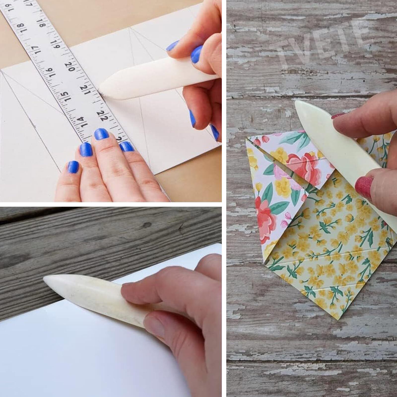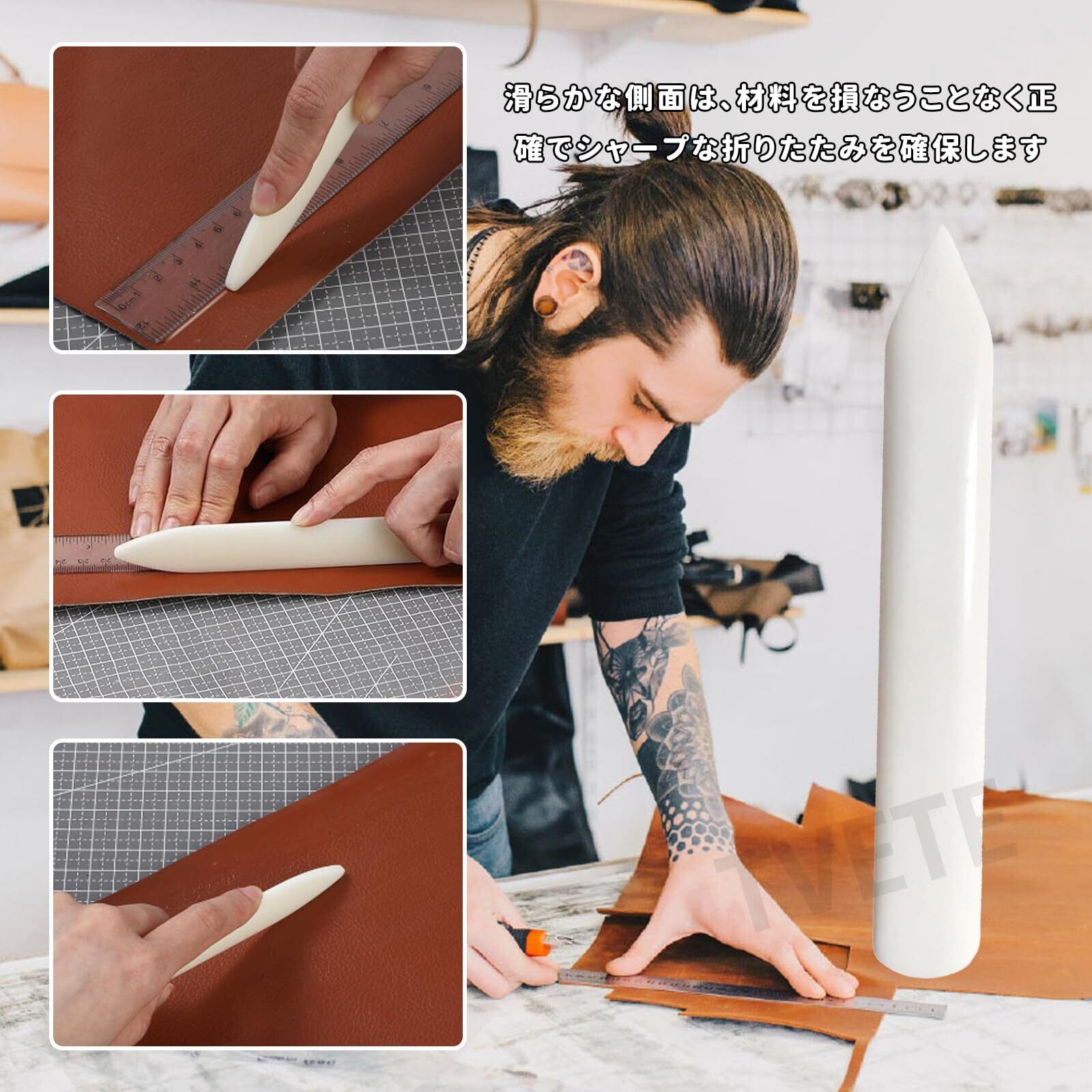 【優れた素材】:模造牛骨革折りツールは、耐摩耗性と耐高温性の合成プラスチックで作られており、質感が硬いだけでなく、表面も滑らかです。特別な処理後の質感は硬くて弾力性があり、耐久性があるだけでなく、自然で素朴な美しさも備えています。