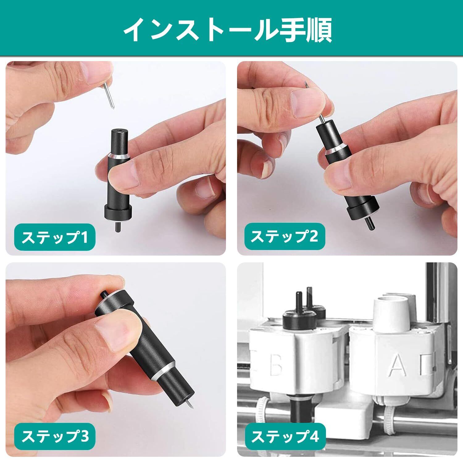 【使いやすい】ブレードの保護キャップを取り外し、ブレードをブレードホルダーに差し込むだけで、簡単にプロッタカッターに取り付けることができます。