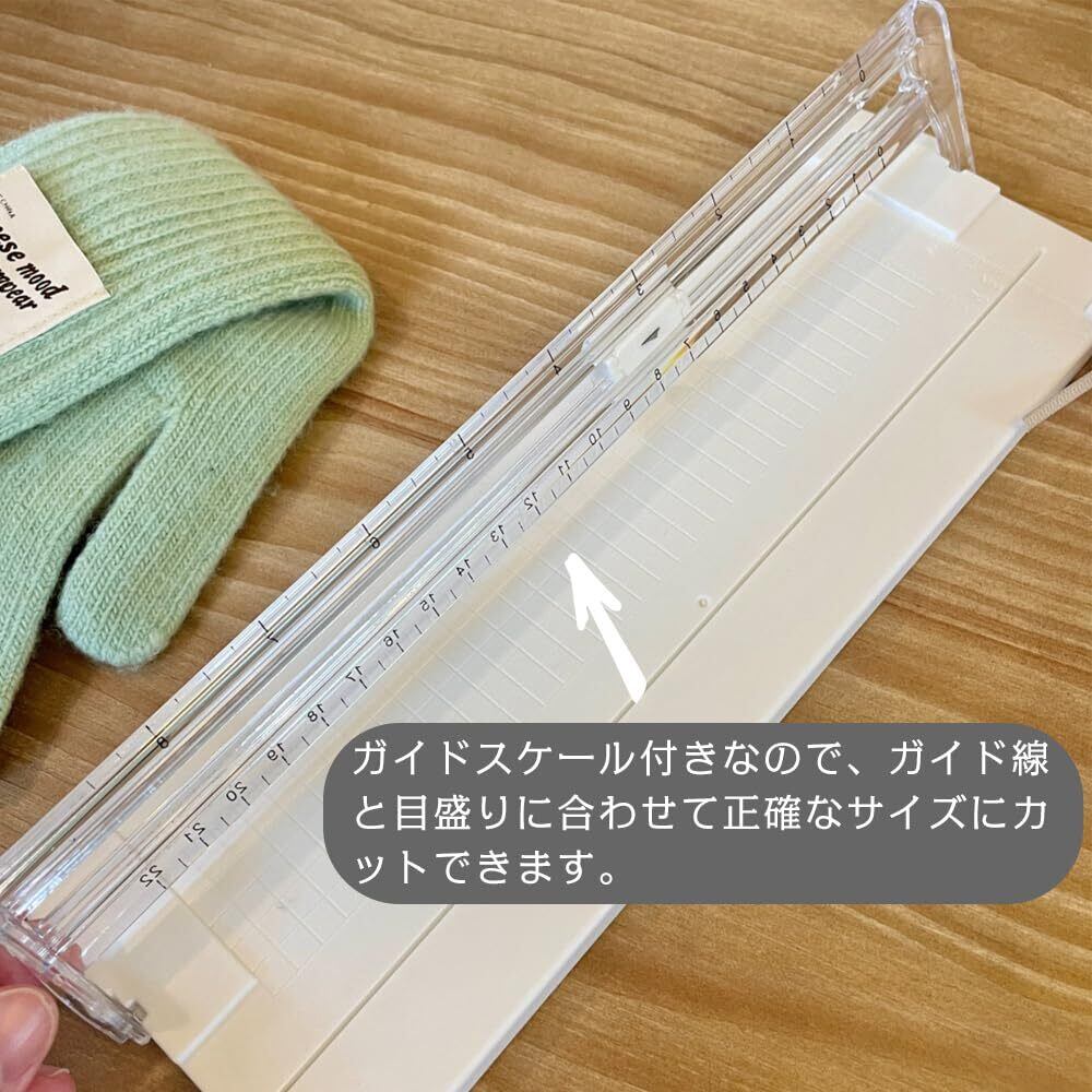 ミニ 裁断機 ペーパートリマー 2個替え刃付き A4 対応 スタンダード裁断 小型 双方向 スライドカッター 厚紙 カード コーピー用紙 表紙 文房具 家庭用 学校用 事務用品 (ホワイト)
