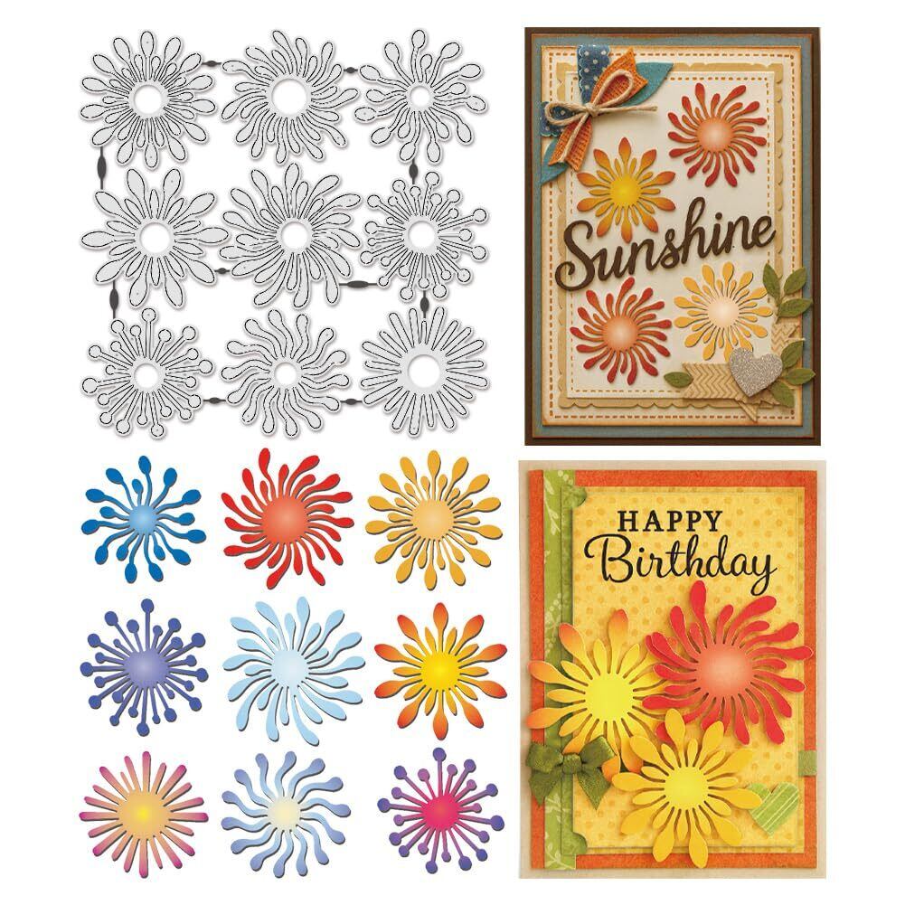 【在庫処分】UNICRAFTALE 9個 花 雄蕊 カッティング ダイ カード 作り 抽象 放射 ボーダー エンボス ダイ カット 炭素 鋼 テンプレート 金属 グリーティング DIY スクラップブッキング アルバム クラフト ホーム
