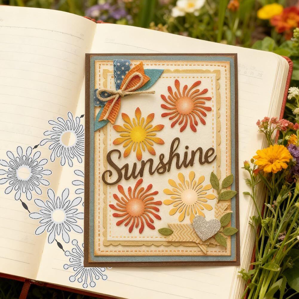 UNICRAFTALE 9個 花 雄蕊 カッティング ダイ カード 作り 抽象 放射 ボーダー エンボス ダイ カット 炭素 鋼 テンプレート 金属 グリーティング DIY スクラップブッキング アルバム クラフト ホーム