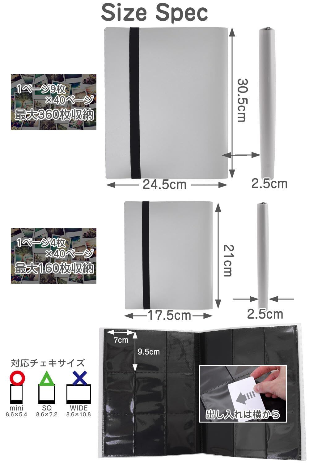 無地のデザインがシンプルなチェキ用アルバム。 収納する写真のジャンルを選ばず使いやすいところがポイント。