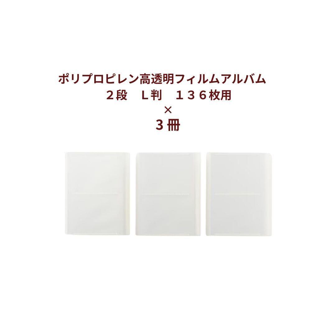 無印 良品 ポリプロピレン 高 透 明 フィルムアルバム 2段 3冊組 L判 136枚用 家族アルバム
