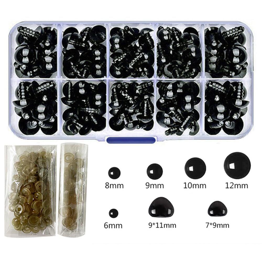 さし目 ドールアイ ぬいぐるみ 目玉 パーツ さし鼻 動物鼻 プラスチックノーズ DIY 縫製 クラフト 手芸パーツ 手作り (さし目 6mm/8mm/9mm/10mm/12mm/9*11mm/7*9mm 135個入り)