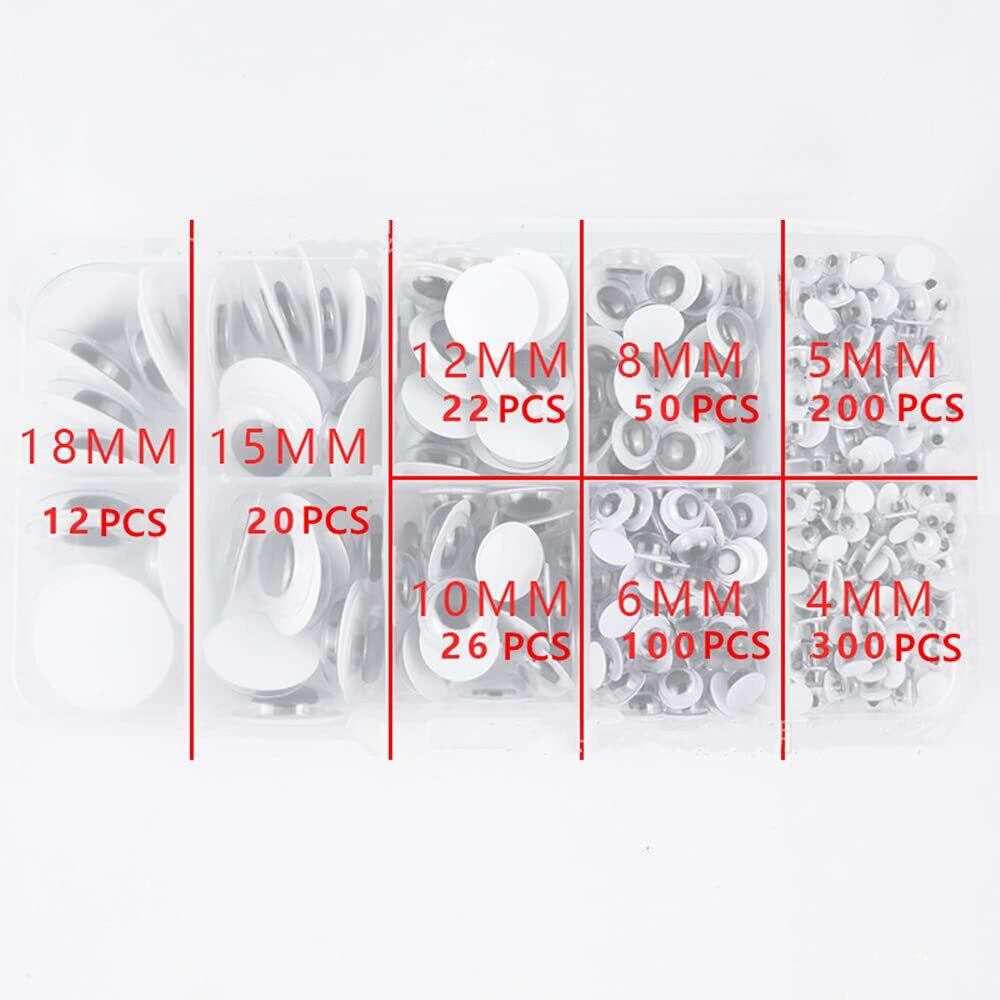 YFFSFDC 動く 目玉 動眼 目パーツ 動物 人形 アイ 黒目 目玉 動眼 目パーツ ドールアイ ドールメイキング クラフト 手芸パーツ 手作りおもちゃ DIY 手作り 目 4mm/5mm/6mm/8mm/10mm/12mm/15mm/18mm 貼り付けタイプ 730個セット