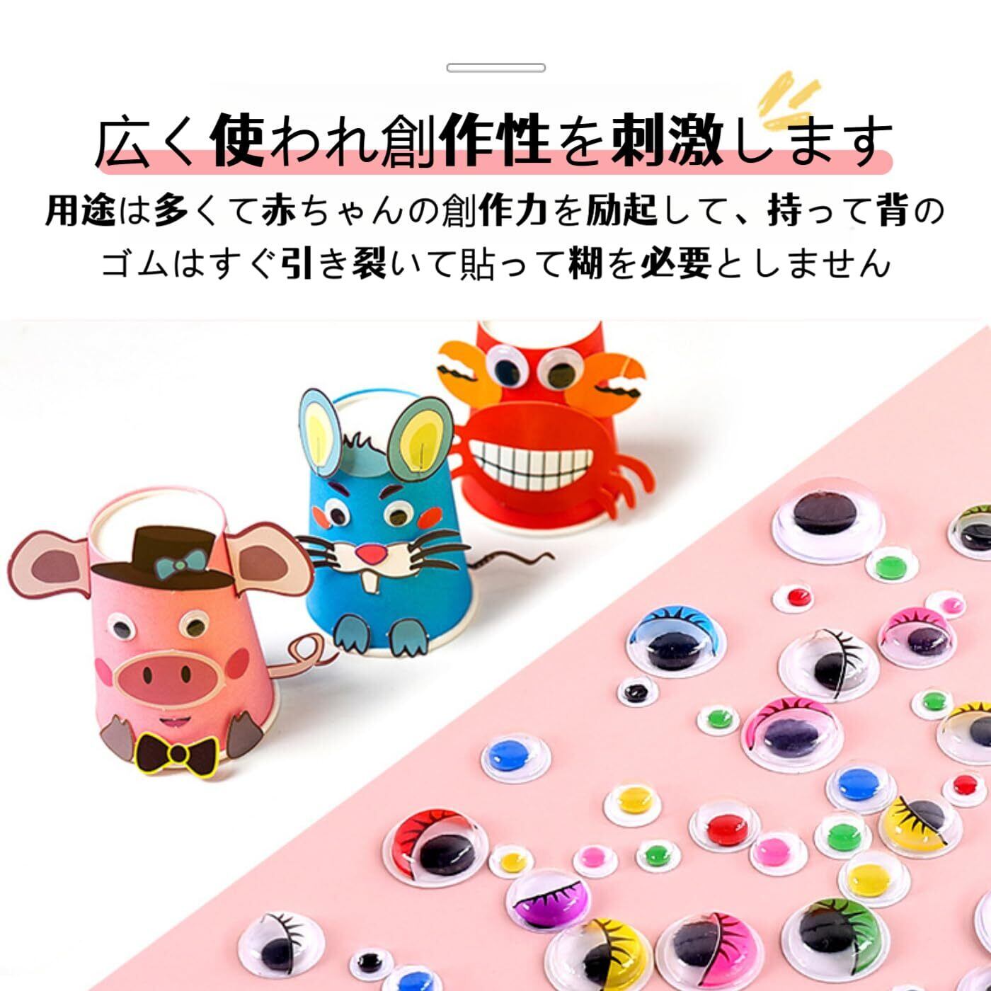 【簡単使い勝手】裏面にシール機能を搭載しているため、シールを剥がすだけでおもちゃ、クラフト作品など任意の対象に簡単に貼り付けることができ。別途接着剤を準備する必要がなく、初心者でも手軽に使用できます。