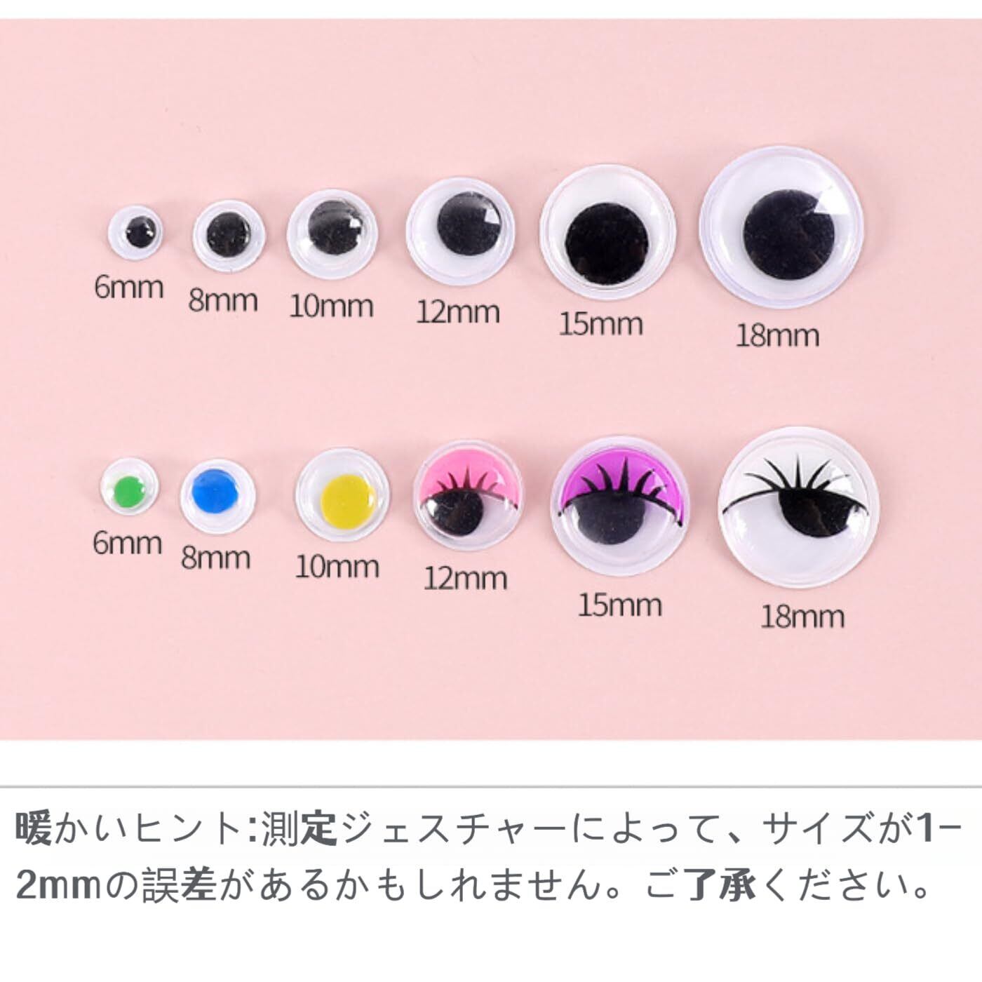 【豊富な仕様】計260個のアイをセットで提供。サイズは6mm・8mm・10mm・12mm・15mm・18mmの6種類に統一。家庭でのDIYや小規模な工芸制作など、日常の多様なニーズを十分に満たすことができます。