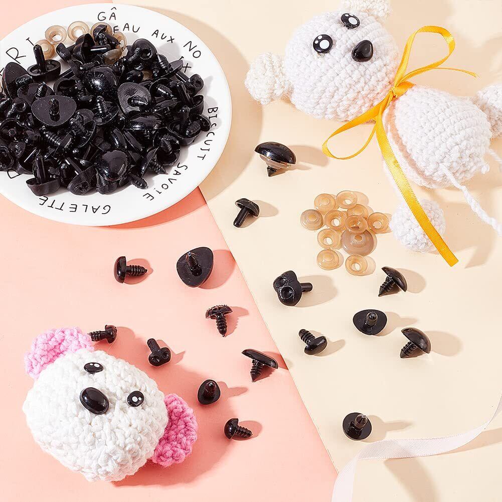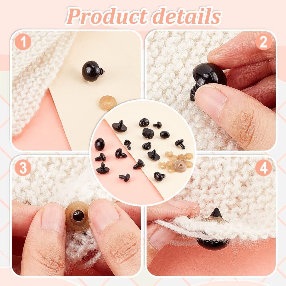 目と鼻のセット:安全な目と鼻が15種入っており、クラフトアイ6種、鼻9種の計150セットです。 また、鼻と目を合わせるための個別のワッシャーが60個入っています。