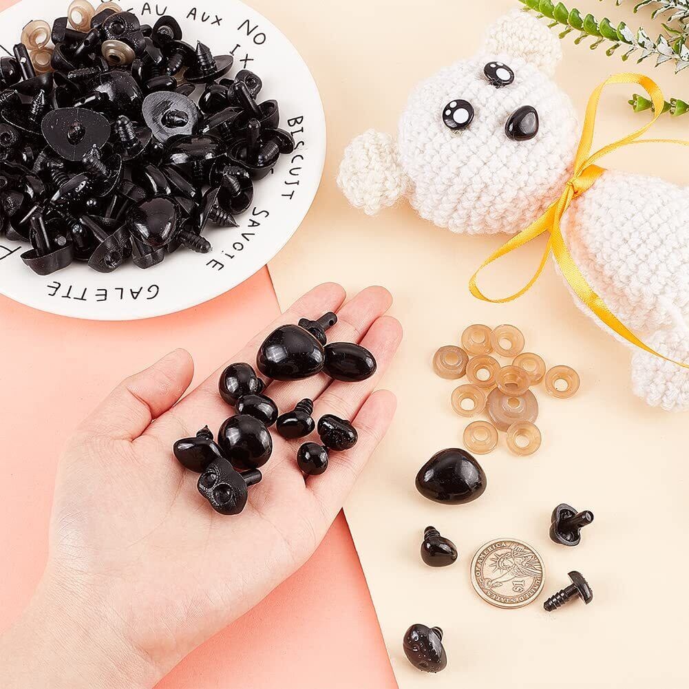 PH PandaHall 15種 さし目 さし鼻 150個 ぬいぐるみ鼻 動物の鼻 プラスチック DIYクラフト 人形 ワッシャー付き 手作り パーツ ドールメイキング DIY用 縫製 手芸材料