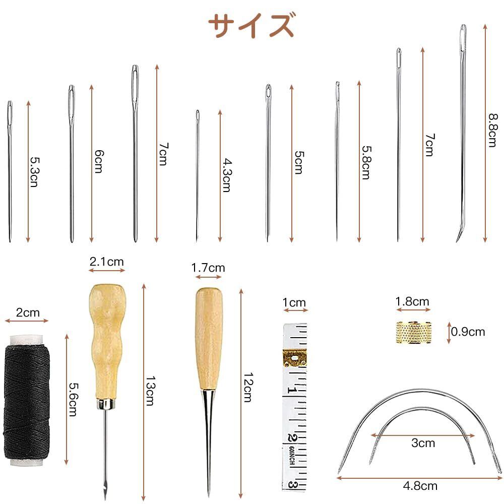多種類の革縫い針:針先が丈夫で鋭いです。革用の工具セットに様々なサイズと形をしている針先があります。結び目の針と先鋭い針、三角針、カーブ針なども含まれます。