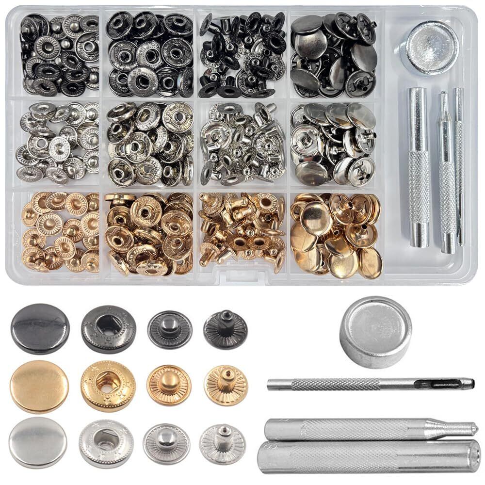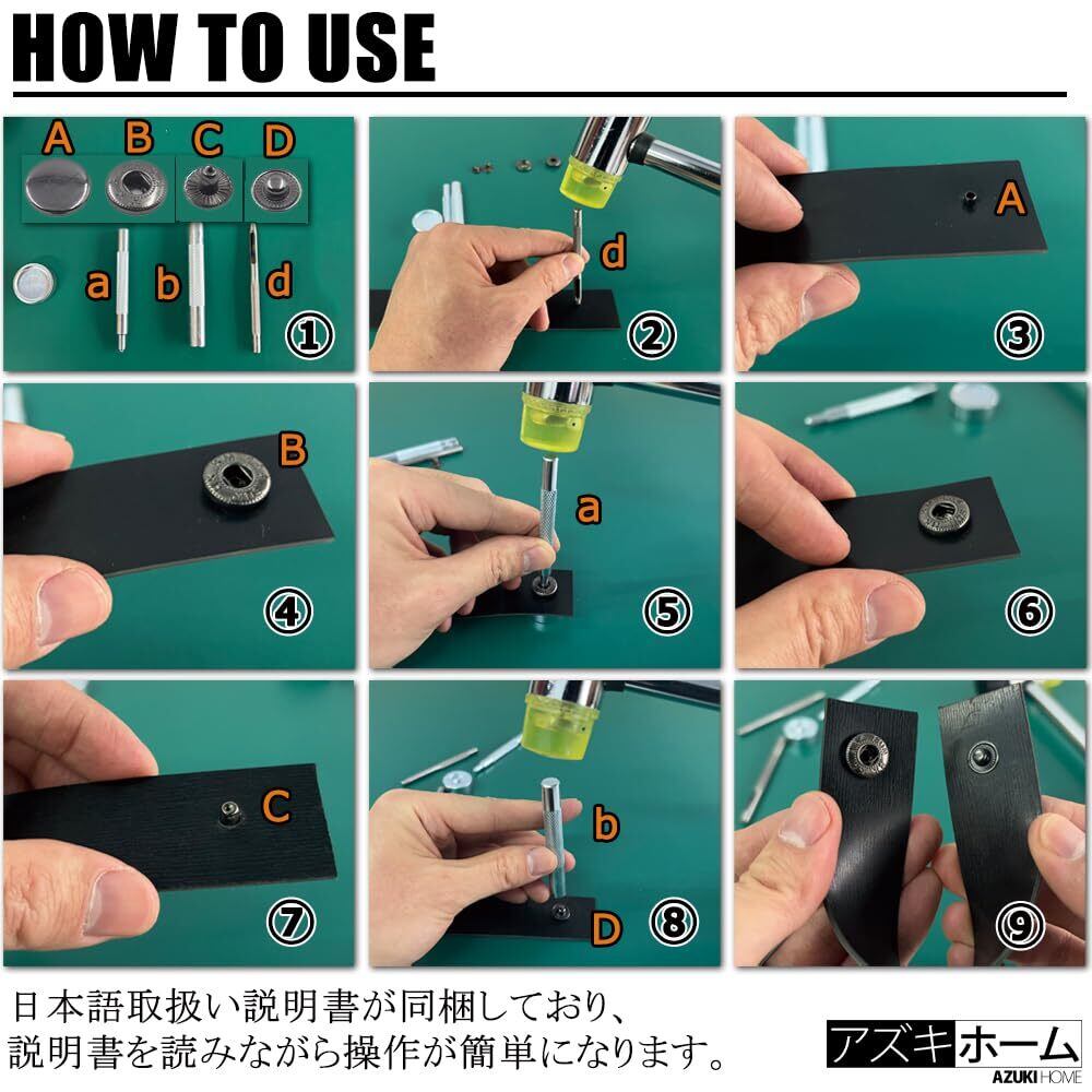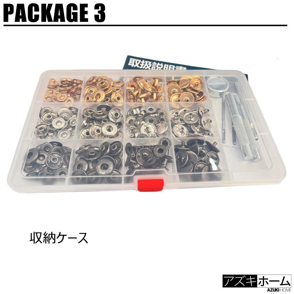 【用 途】作品に合わせてボタンサイズのバリエーションを増やしたい方から、これからレザークラフトを始められる方まで幅広くお使いいただけるセット内容となっています。収納ケースと取扱説明書が付いており、初心者にもお勧めです。