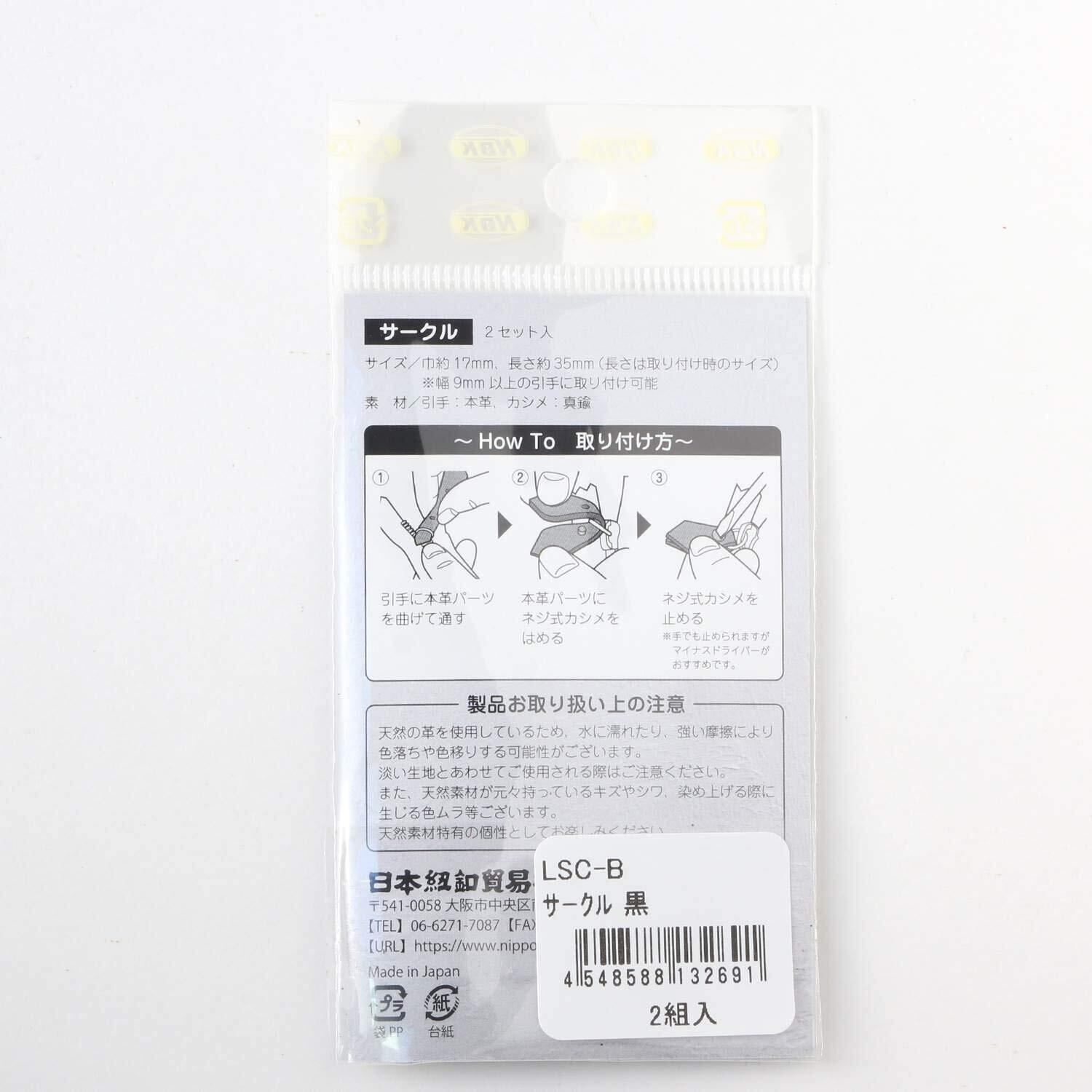 日本紐釦貿易(Nippon Chuko) NBK 本革 ファスナー引き手パーツ サークル型 ネジ式カシメ付き 約17mm×35mm 黒 LSC-B