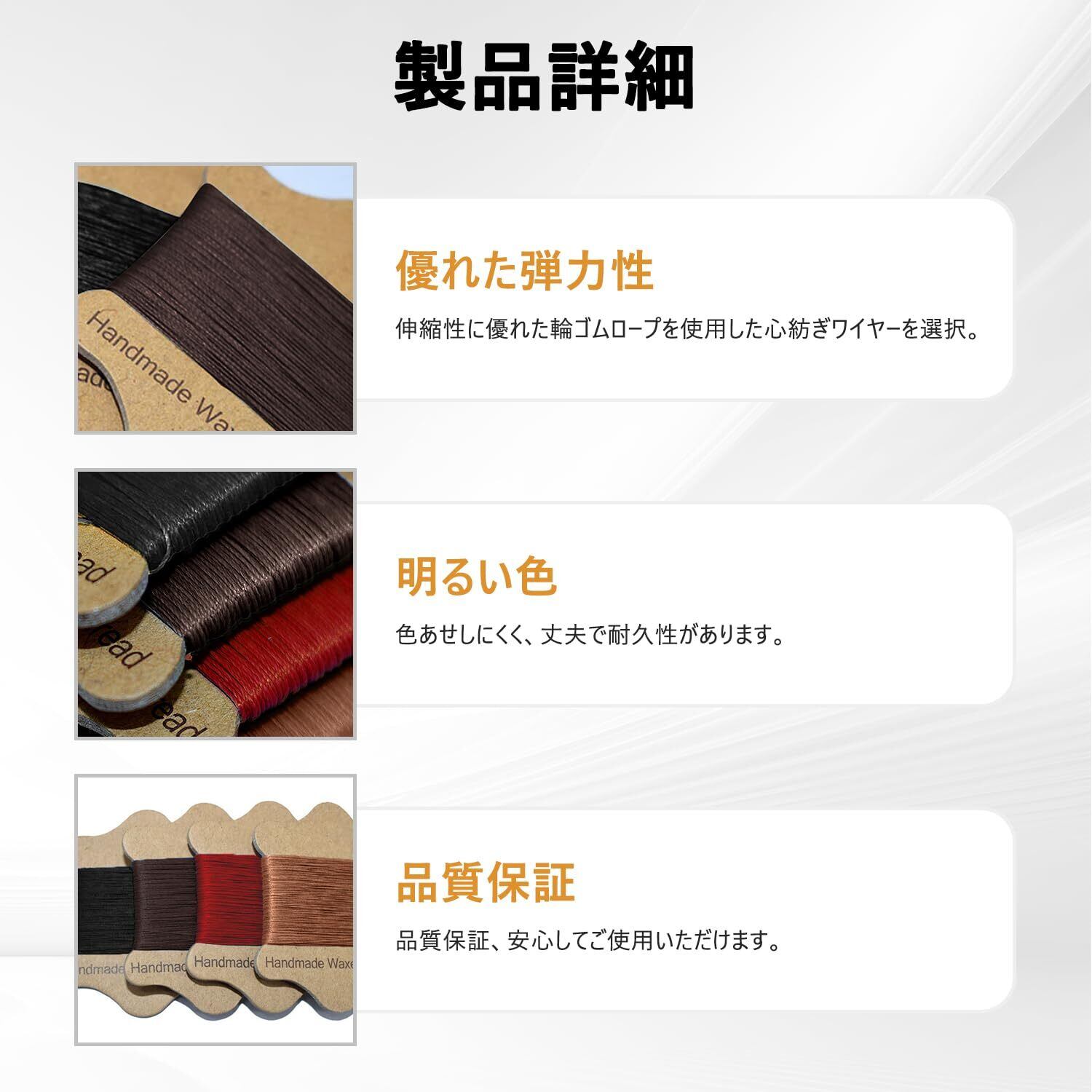 【幅広い用途】このワックスコードは、編組ブレスレット、ジュエリー作り、ペンダント、財布、革、キャンバス、ブラインド、テント、室内装飾品、屋外、ビーズ、縫製装飾、工芸品、コサージュ、装飾品、クロスステッチ刺繍、包装、糸通し、結び目などいろんな場合に適しています。
