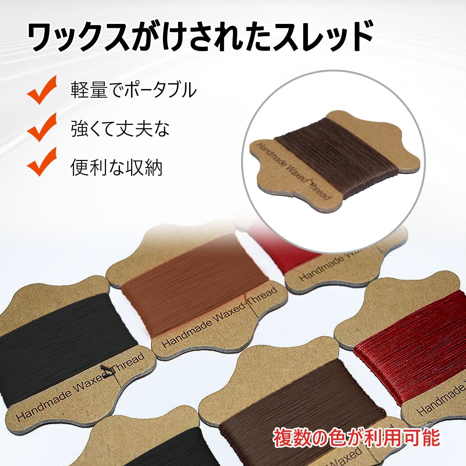 【豊富なカラーバリエーション】当社の蝋引き糸は4色セットです。日常のレザー色に対応し、プロジェクトのスタイルや好みに応じて適切な色を選択し、作品をよりユニークなものにすることができます。ご注意:生産ロットによりサイズやお色が若干変更になる場合がございます。画像では100%同じお色を表現することは出来ません。実際のお色味と若干異なる場合がございます。