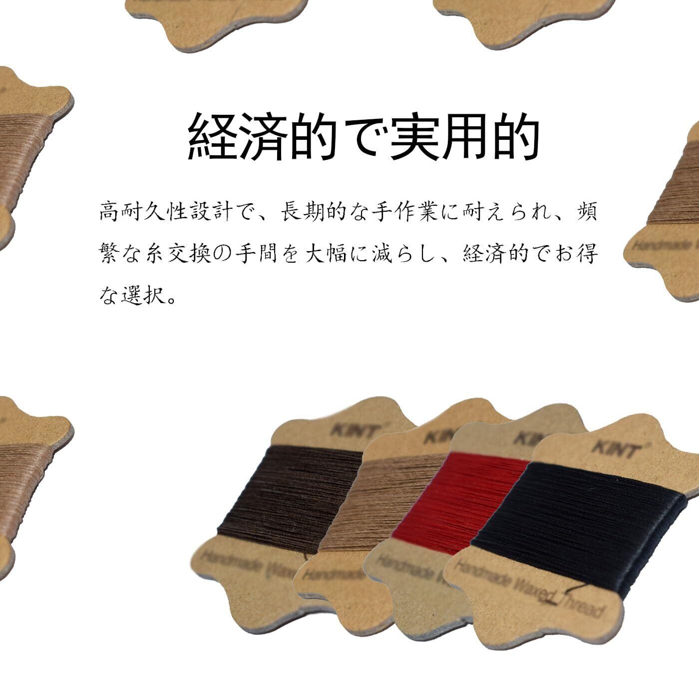 レザークラフト用ワックスコード 蝋引き糸 4 個セット 0.65mm 手縫い糸 DIY 手芸対応 4 色展開 (ダークブラウン + ライトベージュ + ブラック + レッド)