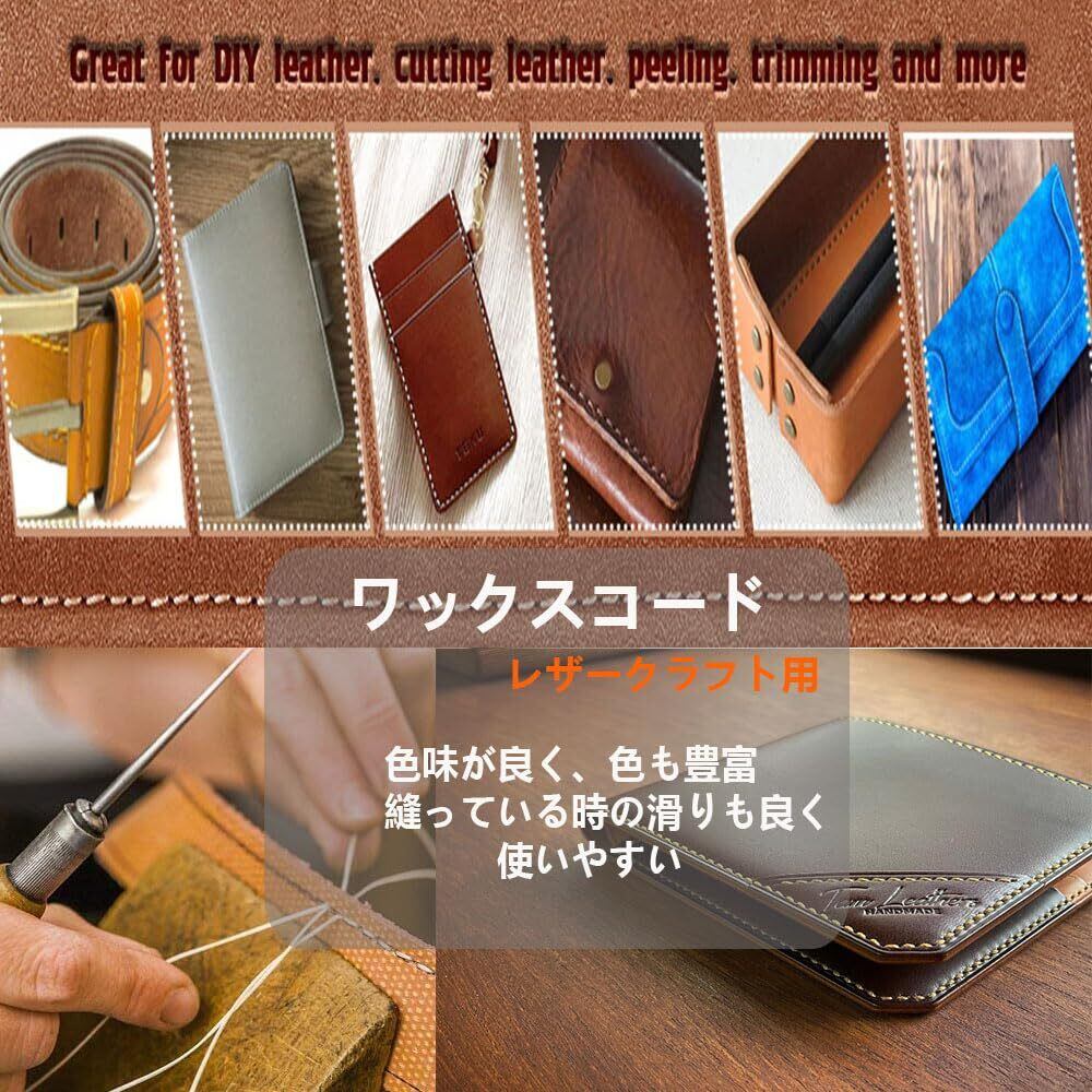 【高品質ワックスコード】 レザーコードの中にしっかりロウが入っているので、通常のナイロン糸より強度も強く無駄に多量のロウが表面についていない為、縫いやすくまた縫った糸の発色も良くなるように加工してあります。麻糸よりもすれに強く、縫った時から毛羽立つような事はないです。