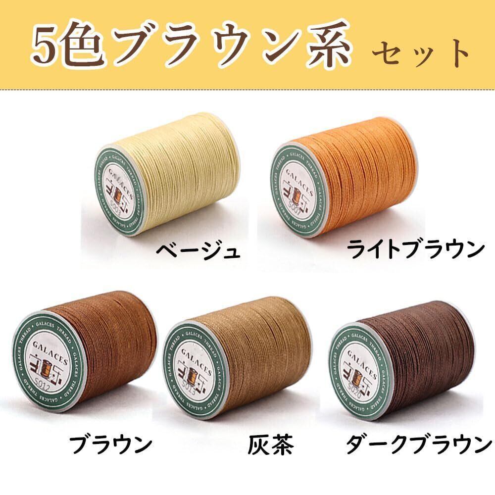 蝋引き糸1㎜ ロウビキ ワックスコード 丸い蝋引き紐 レザークラフトとマクラメ用5色セット 手縫い 編み 手芸 紐 DIY 糸 ろう引き糸 (A, 平紐)
