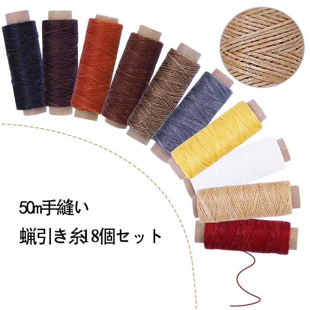 蝋引き糸 ロウ引き糸 ワックスコード レザークラフト 糸 ろう引き糸 蝋引き紐 カラフル 18色セット 各50m 手縫い 編み用糸 初心者 練習 DIY 紐 糸 革 レザークラフト 1mm直径