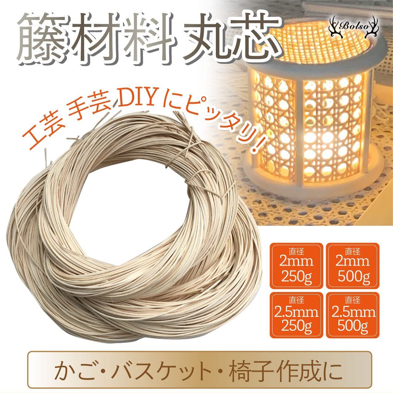 【2022最新】BOLSO 籐 丸芯 ラタン 工芸 手芸 DIY 籐編み キット かご バスケット 椅子 作成 材料 (2mm 500g)