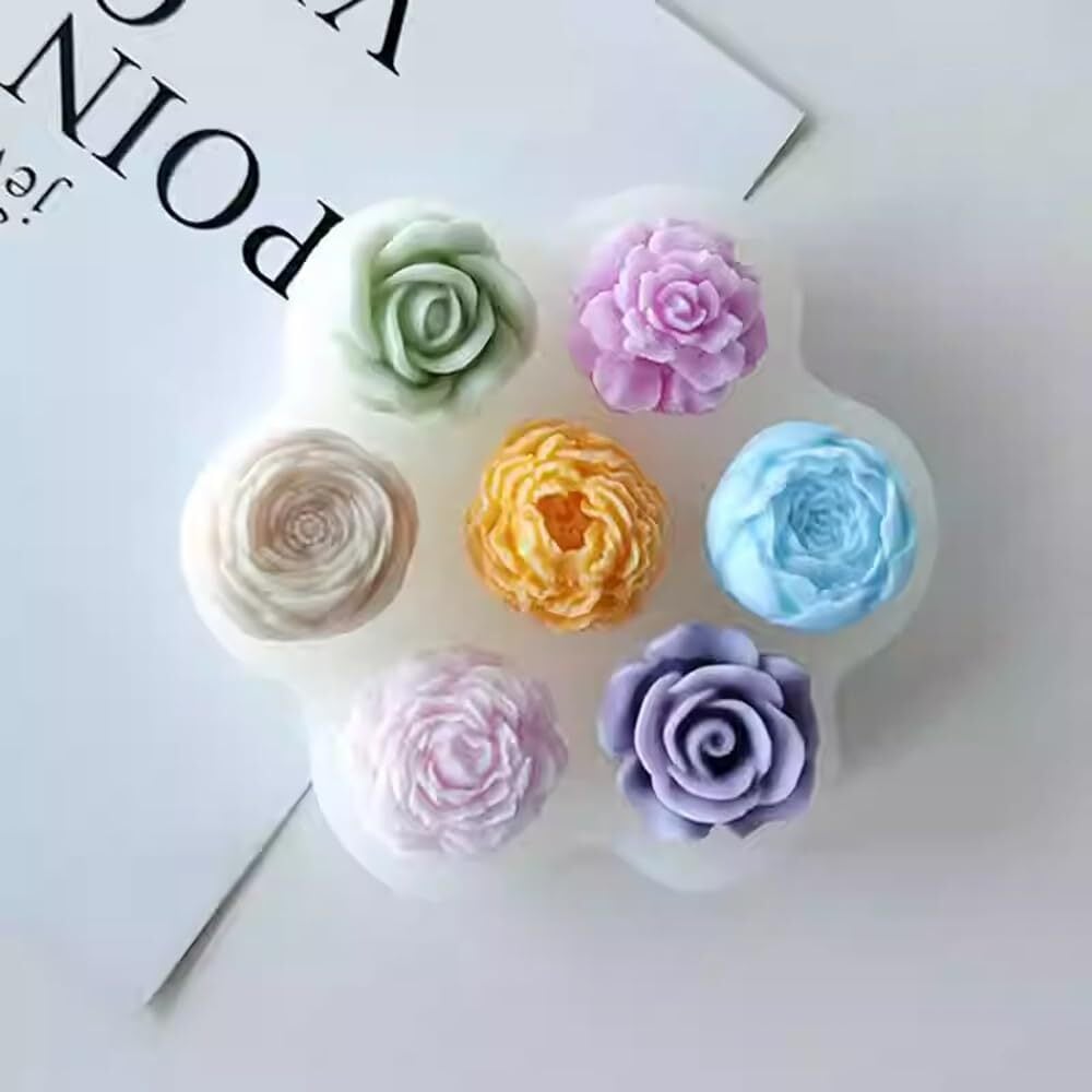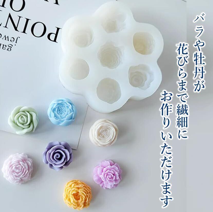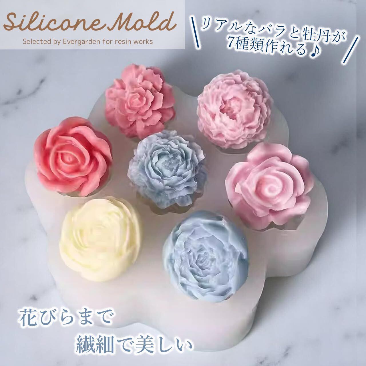 【新着商品】シリコンモールド バラ 立体 牡丹 薔薇 ばら ローズ 花 フラワー レジン アクセサリー パーツ イヤリング ピアス キーホルダー シリコン モールド キャンドル アロマストーン 石膏 手作り 樹脂 粘土 シリコン型 型 キット ハンドメイド (バラ立体 7種類)