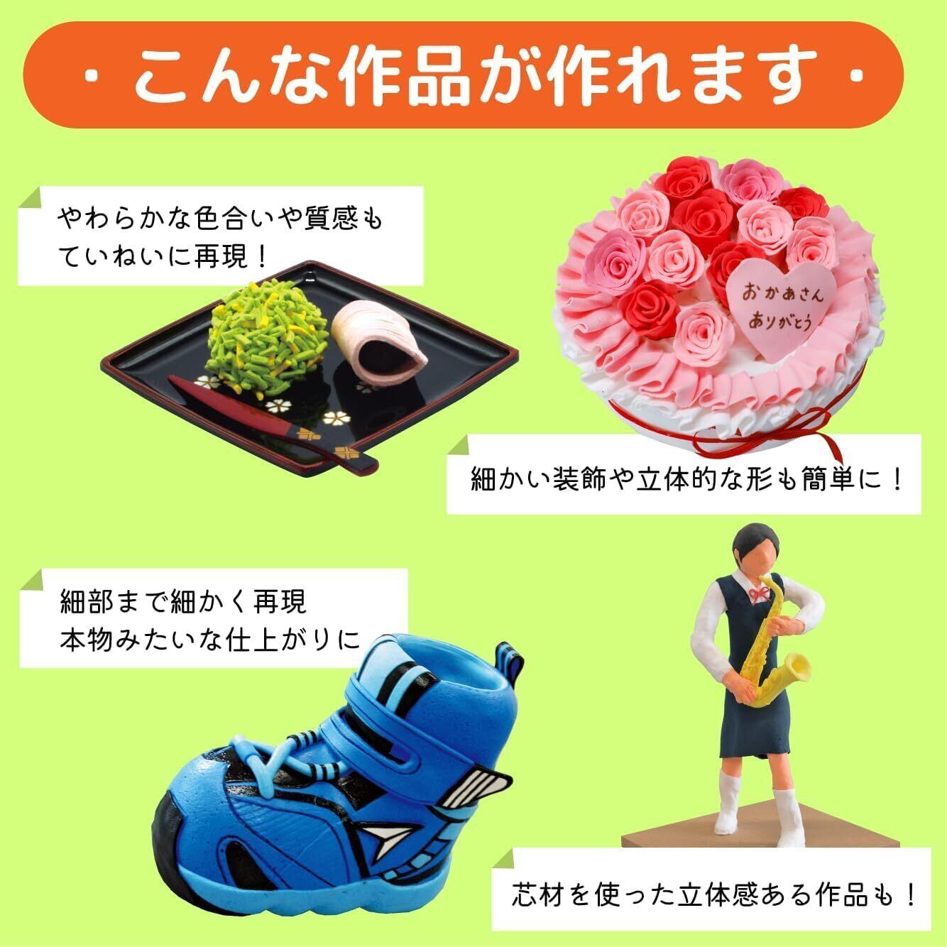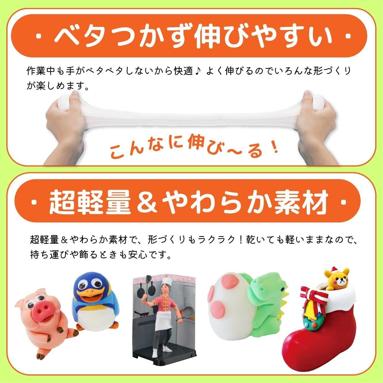 超軽量設計: 軽量紙粘土なので持ち運びや作業が楽で、乾燥後も軽い仕上がりになります