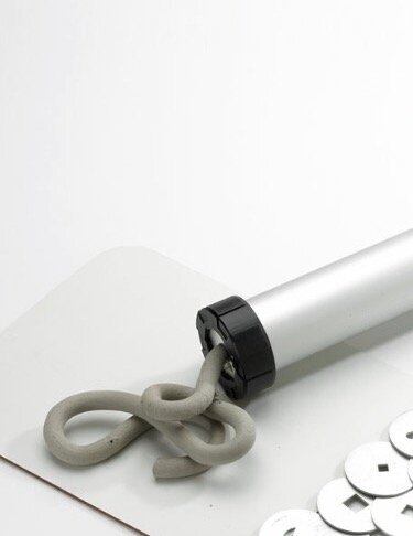■穴のないダイが入っていて、これを付けると粘土が 余っても乾燥せずに次の日にも紐を製作できます。