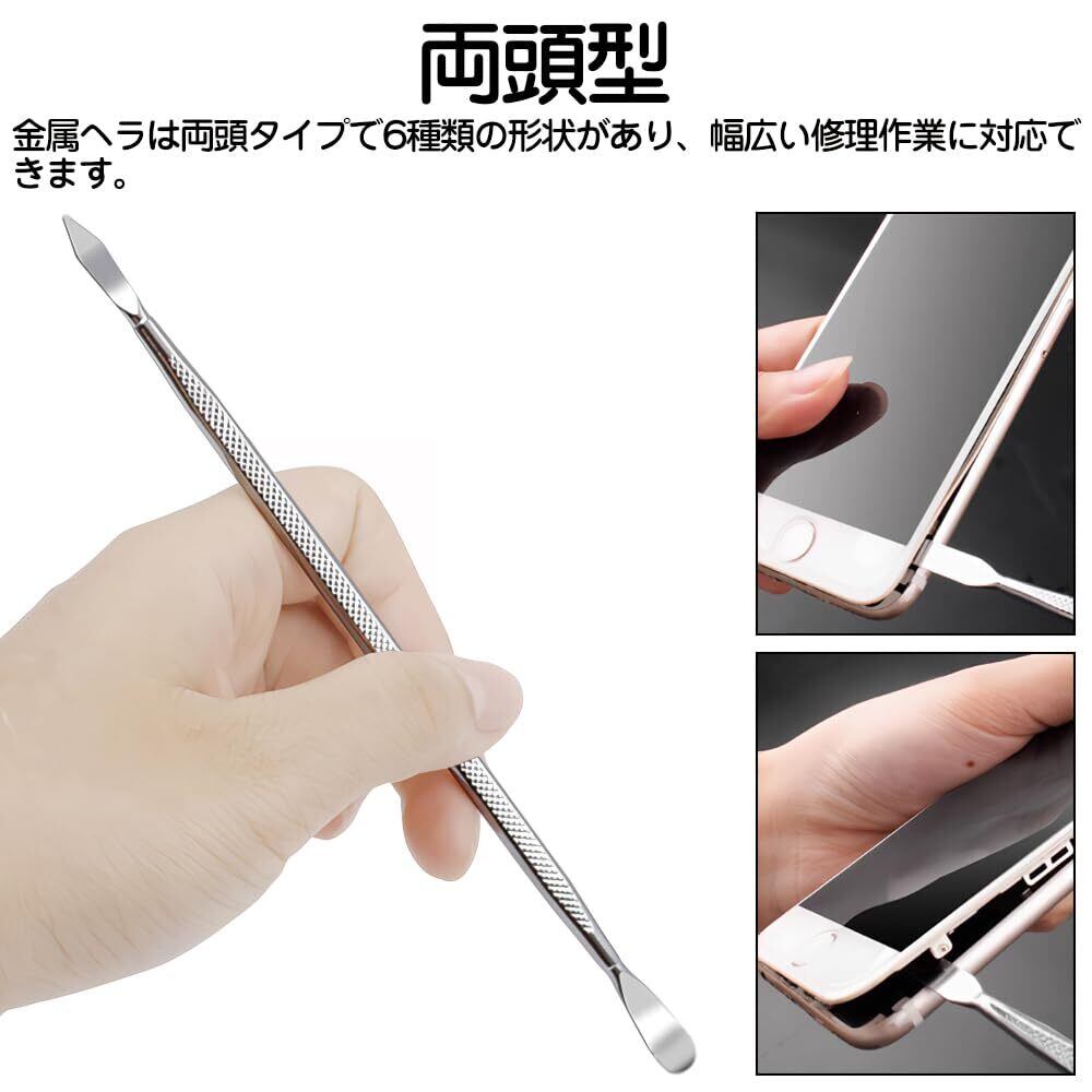 両頭型:金属ヘラは両頭タイプで6種類の形状があり、幅広い修理作業に対応できます。