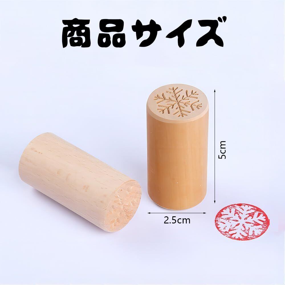 【パッケージに含まれるもの】5pcsのミックスパターン丸型木製スタンプ、1つの花柄、1つのさくら柄、1つの雪柄、1つのウサギ柄、1つの六角柄。