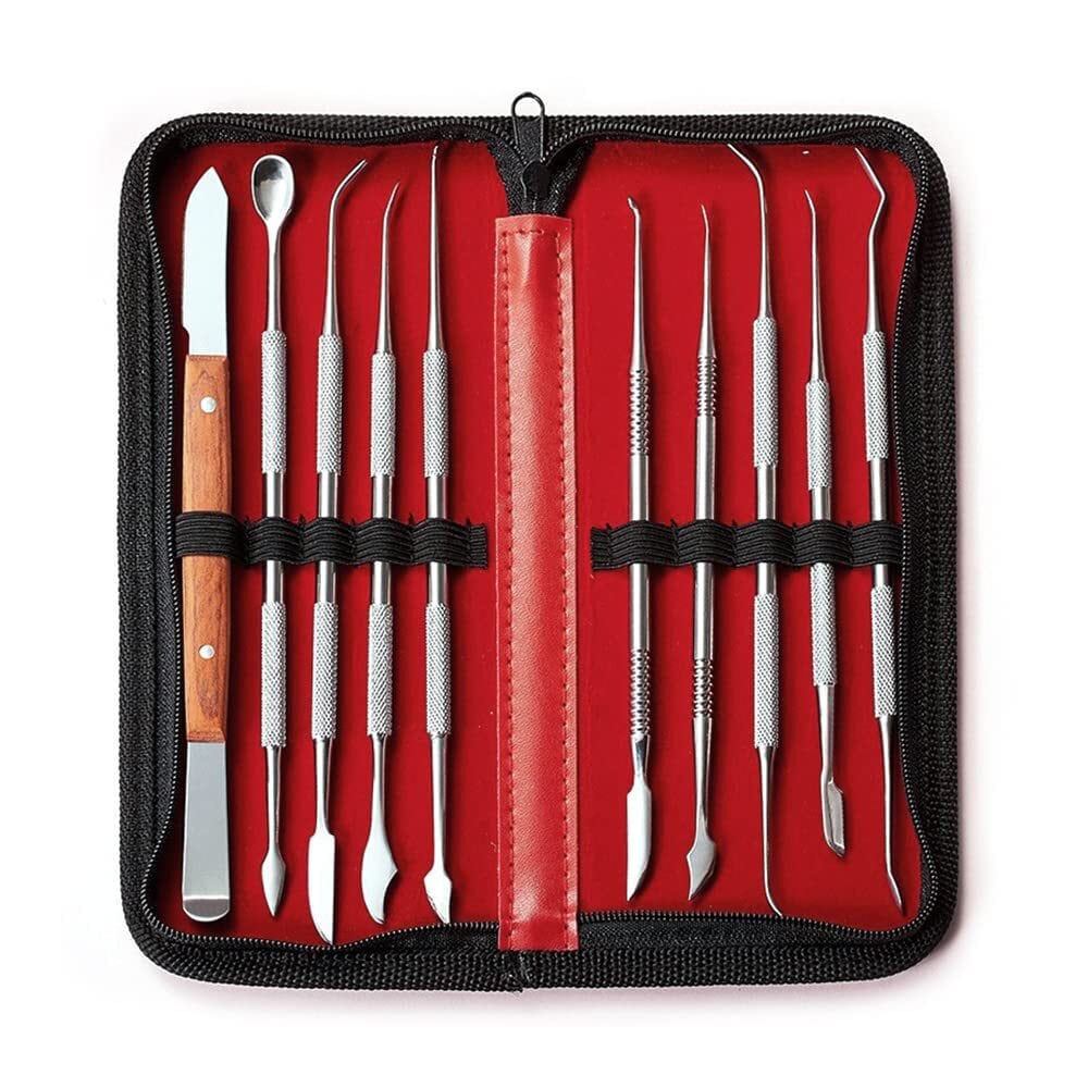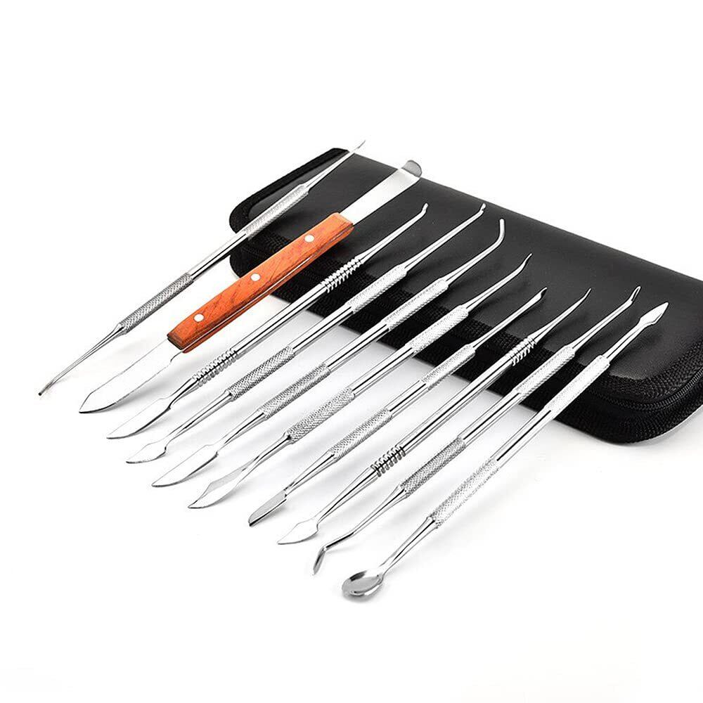 【人気商品】スパチュラ ツールセット 10本セット 篆刻刀 ヘラ ステンレス製 粘土 造形 陶芸 模型 細工 フィギュア 樹脂粘土 彫刻 パテ へら クラフト 工具 道具 セット 収納ケース付き